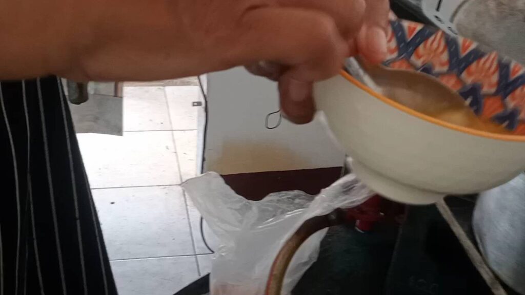 เราไม่ได้ใช้ซอสที่ขายทั่วไปตามตลาด แต่ทำขึ้นมาใหม่ รสชาติเปรี้ยวหวาน ใส่รากผักชี และกระเทียมสับ ไม่เหมือนใคร