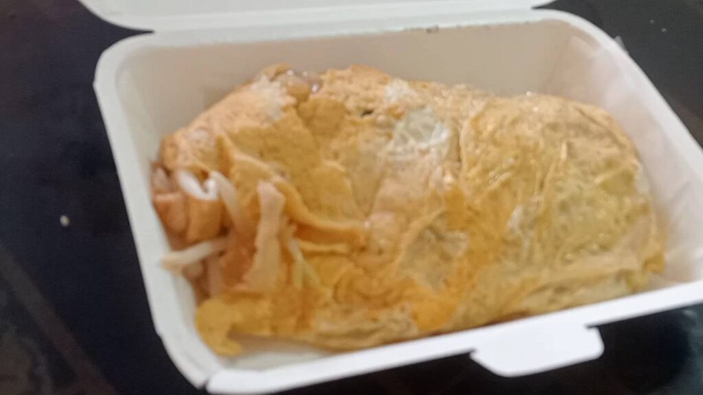 ผัดไทยห่อด้วยไข่ ห่อละ 35 บาท แบบธรรมดา แบบพิเศษไข่ 2 ฟอง 40 บาท ทางเราได้บ้างลูกค้าได้บ้างในช่วงเศรษฐกิจในยุคนี้ไม่ดีต้องช่วยกัน
