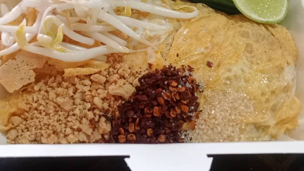 ผัดไทยเมนูเด็ดอย่างของทางร้าน สูตรเราไม่ใส่มันกุ้ง แต่ใช้สูตรห่อไข่ ห่อด้วยเส้นเอาไว้ทั้งหมด ชาวต่างชาติ ชาวไทย ทุกเทศทุกวัยชอบมาก มาทานที่ร้านอยู่เรื่อยๆ