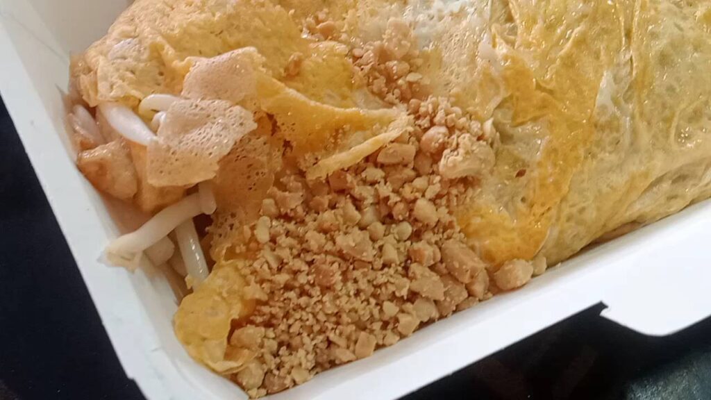 ผัดไทยห่อไข่ ผัดไทยแบบโบราณ ใช้น้ำมะขามเปียกแบบดั้งเดิม เป็นสูตรพิเศษคิดค้นขึ้นมาเองไม่เหมือนใคร ถั่วและพริกทางร้านคั่วเองด้วยสองมือ