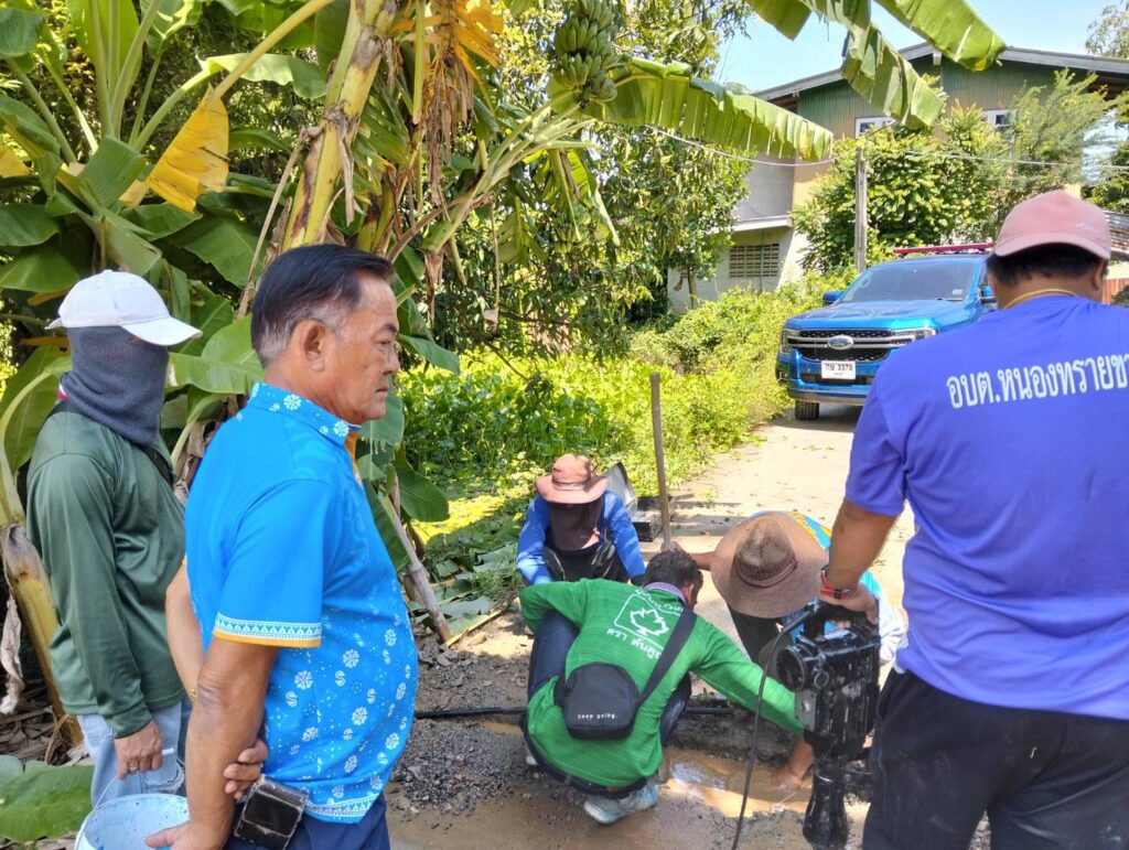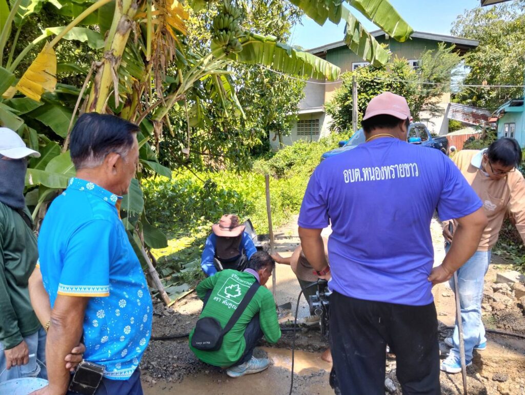 ได้นำทีมงานกองช่าง อบต. หนองทรายขาว พร้อมด้วยประธานสภา อบต.หนองทรายขาว ลงพื้นที่บริเวณหมู่ที่ 3 บ้านสระเตยน้อย ทำการขุดหาท่อส่งน้ำของ อบต.หนองทรายขาวเ เพื่อที่จะซ่อมแซมจุดที่ชำรุดเสียหายต่อไป และท่านนายกอบต.หนองทรายขาว ยังได้ตัดแค่งกิ่งไม้บริเวณ 2 ข้างที่รุกล้ำเข้ามาในถนนอีกด้วย