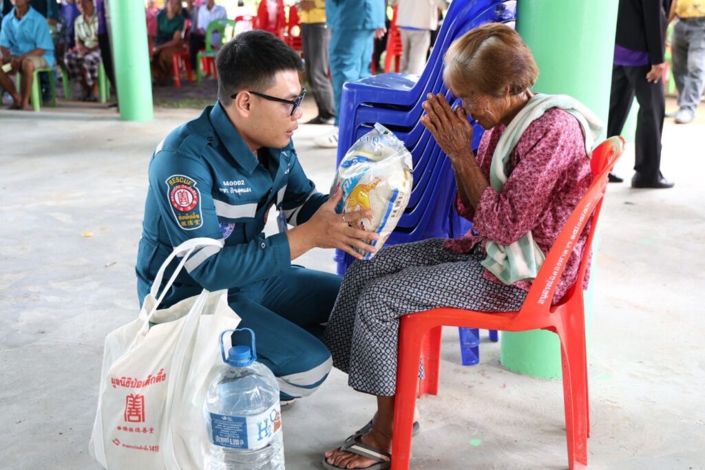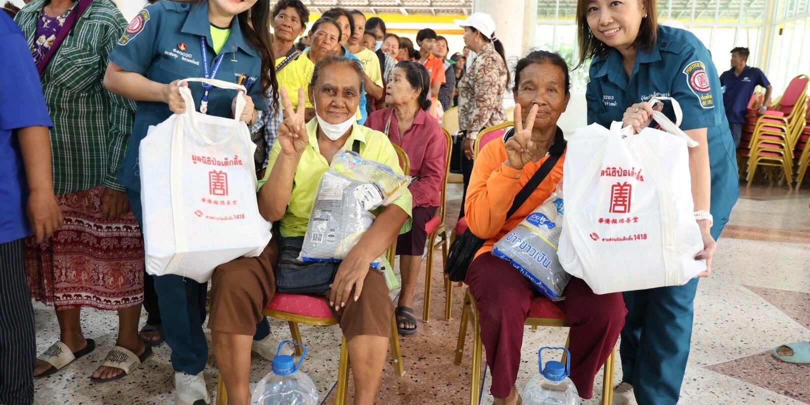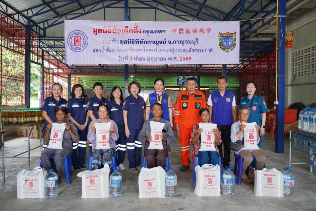 วานนี้ (วันอังคารที่ 3 มิถุนายน พ.ศ. 2568) มูลนิธิป่อเต็กตึ๊ง นำโดย นางศิริกุล โอภาสวงศ์ กรรมการและเลขาธิการ พร้อมด้วย นางสาวดวงชุตา ติยะพจนพรกุล ผู้ช่วยผู้จัดการฝ่ายสังคมสงเคราะห์ และนายรัชพร ประสงค์ทรัพย์ หัวหน้าแผนกสาธารณภัย และนางสาวเนาวรัตน์ วรรณศิริ หัวหน้าแผนกหน่วยแพทย์สงเคราะห์ชุมชน นำทีมเจ้าหน้าที่แผนกสาธารณภัย แผนกบรรเทาสาธารณภัย ลงพื้นที่มอบน้ำดื่มพร้อมเครื่องอุปโภคบริโภค ประกอบด้วย ข้าวสาร บะหมี่กึ่งสำเร็จรูป น้ำมัน น้ำปลา และปลากระป๋อง บรรจุถุงผ้ามูลนิธิฯ ให้แก่ผู้ประสบภัยธรรมชาติในพื้นที่จังหวัดกาญจนบุรี รวม 600 ชุด พร้อมจัดหน่วยแพทย์สงเคราะห์ชุมชน นำทีมแพทย์อาสาฯ เจ้าหน้าที่หน่วยแพทย์ ทีมบรรเทาสาธารณภัย (กู้ชีพ) และอาสาสมัครลงพื้นที่ให้บริการประชาชนฟรี ประกอบด้วย บริการตรวจรักษาโรคทั่วไป จ่ายยา ทันตกรรม คัดกรองเบาหวาน กิจกรรมนันทนาการ ตรวจวัดสายตาพร้อมแจกแว่น บริการตัดผม ฯลฯ โดยมี นางสาวชลธิชา วงษ์อุตสาห์ นายอำเภอเลาขวัญ พร้อมด้วยคณะอาสาสมัครเฉพาะกิจมูลนิธิป่อเต็กตึ๊ง ร่วมในพิธี และคณะมูลนิธิพิทักษ์กาญจน์ เป็นผู้ประสานงานและร่วมในพิธี ณ บริเวณวัดศรีพนมเทียน (ห้วยรวก) ตำบลหนองฝ้าย อำเภอเลาขวัญ จังหวัดกาญจนบุรี