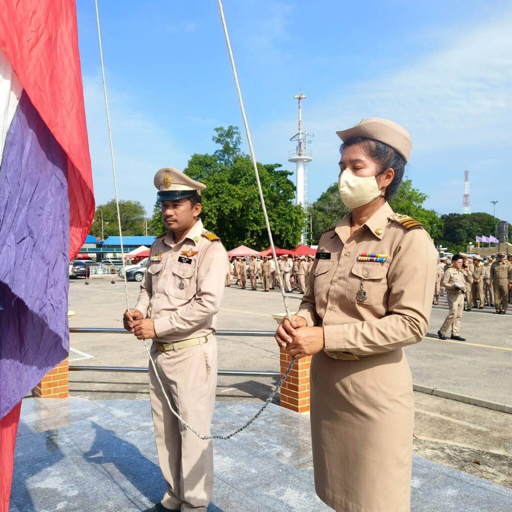 - เคารพธงชาติ ณ บริเวณหน้าอาคารที่ว่าการอำเภอเมืองลพบุรี
