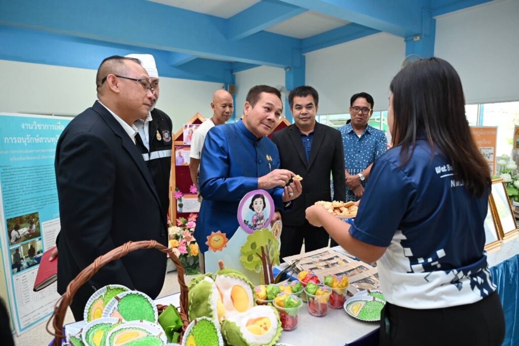 พลเอก สวัสดิ์ ทัศนา ประธานคณะกรรมาธิการวิสามัญการพิทักษ์และเทิดทูนสถาบันพระมหากษัตริย์ วุฒิสภา ว่าที่พันตรี กรพด รุ่งหิรัญวัฒน์ สมาชิกวุฒิสภา พร้อมด้วย คณะอนุกรรมมาธิการศึกษาและเสนอแนะแนะแนวทางด้านการสื่อสารในการพิทักษ์และเทิดทูนสถาบันพระมหากษัตริย์ ได้ลงพื้นที่เยี่ยมชมและรับฟังผลการดำเนินงานโครงการอนุรักษ์พันธุ์พืช ซึ่งเป็นโครงการที่ดำเนินการภายใต้พระราชดำริ ของสมเด็จพระกนิษฐาธิราชเจ้า กรมสมเด็จพระเทพรัตนราชสุดาฯ สยามบรมราชกุมารี โดยมี นายพลชัย โยศรีคุณ ผู้อำนวยการโรงเรียนวัดบางอ้อยช้าง คณะครู และนายมนตรี แย้มทรัพย์ ปราชญ์ทุเรียน ให้การต้อนรับ