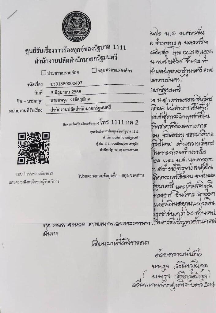 ทั้งนี้วันนี้นาย นพรุจ วรชิตวุฒิกุล อดีตแกนนำกลุ่มพิราบขาว2006 ได้ นำหนังสือร้องเรียนมายื่น