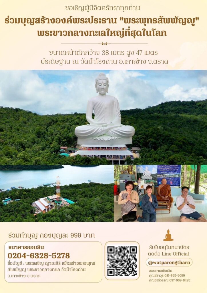 ร่วมเป็นเจ้าภาพบุญสร้าง “พระพุทธสัพพัญญู” ได้โดยเป็นเจ้าภาพกองบุญละ 999 บาท หรือร่วมทำบุญตามกำลังศรัทธา สามารถร่วมบุญได้ที่