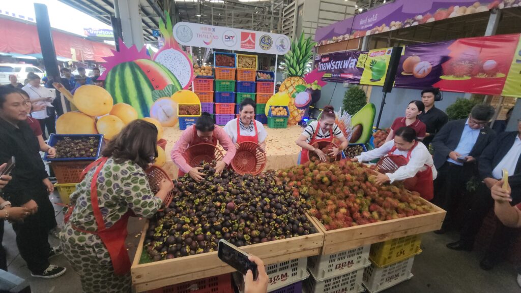 ด้านนายวิทยากร มณีเนตร อธิบดีกรมการค้าภายใน กล่าวว่า ในปี 2568 นี้ ถือเป็น “ปีทองของผลไม้ตะวันออก” โดยมีผลผลิตรวมเพิ่มขึ้นถึง 29% หรือราว 1.29 ล้านตัน เมื่อเทียบกับปีก่อน โดยเฉพาะมังคุดที่เพิ่มขึ้นถึง 43% ขณะที่เงาะและลองกองก็เติบโตตามลำดับ ซึ่งช่วงพีคของผลไม้จะอยู่ในเดือนพฤษภาคม คิดเป็นกว่า 41% ของผลผลิตรวมตลอดปี ทั้งนี้คาดว่าจะมีผลผลิตเข้ามาจำหน่ายที่ตลาดสี่มุมเมืองมากถึง 2,700 ตันต่อเดือน คิดเป็นมูลค่ากว่า 121.5 ล้านบาท สะท้อนถึงความคึกคักของตลาดผลไม้ไทยฤดูกาลนี้