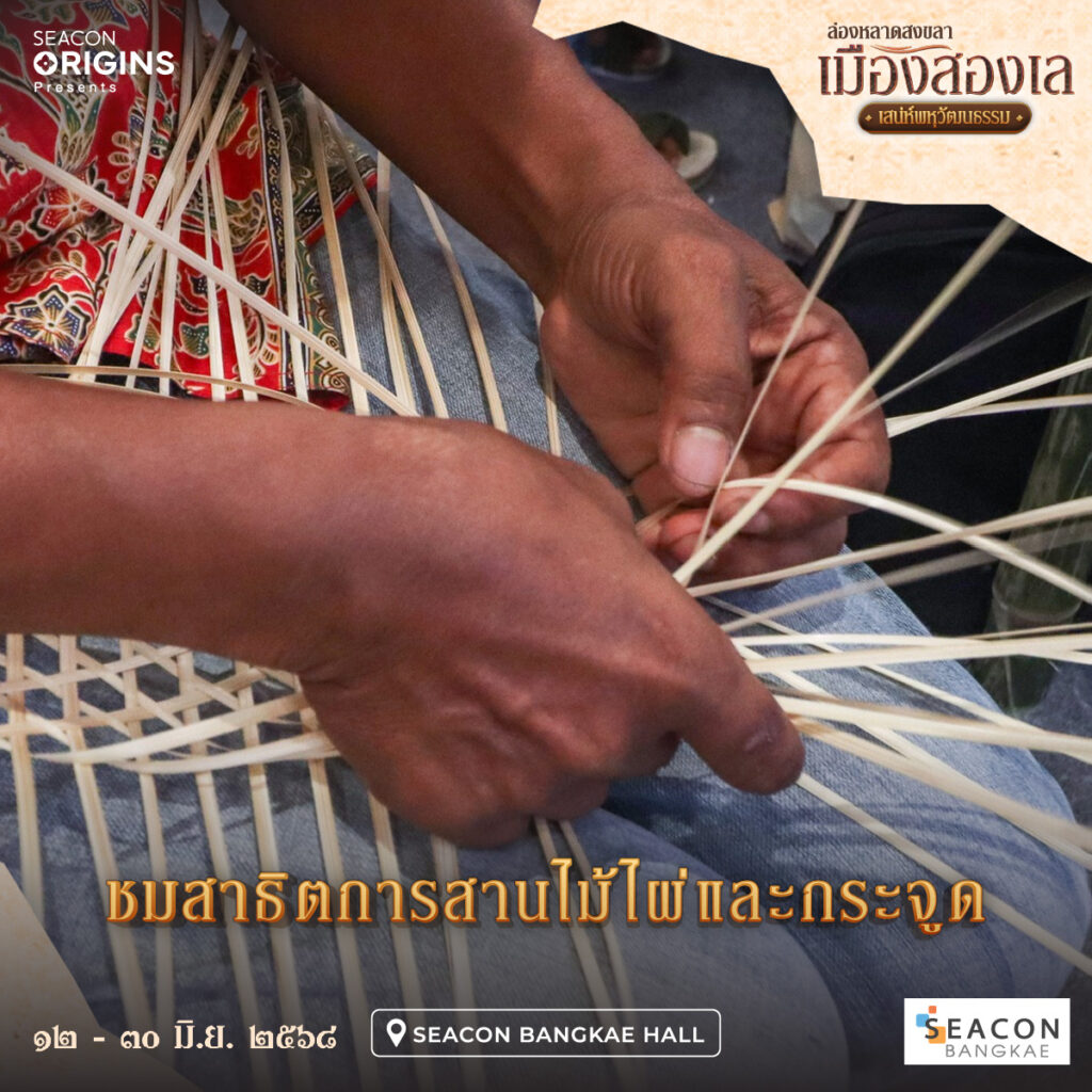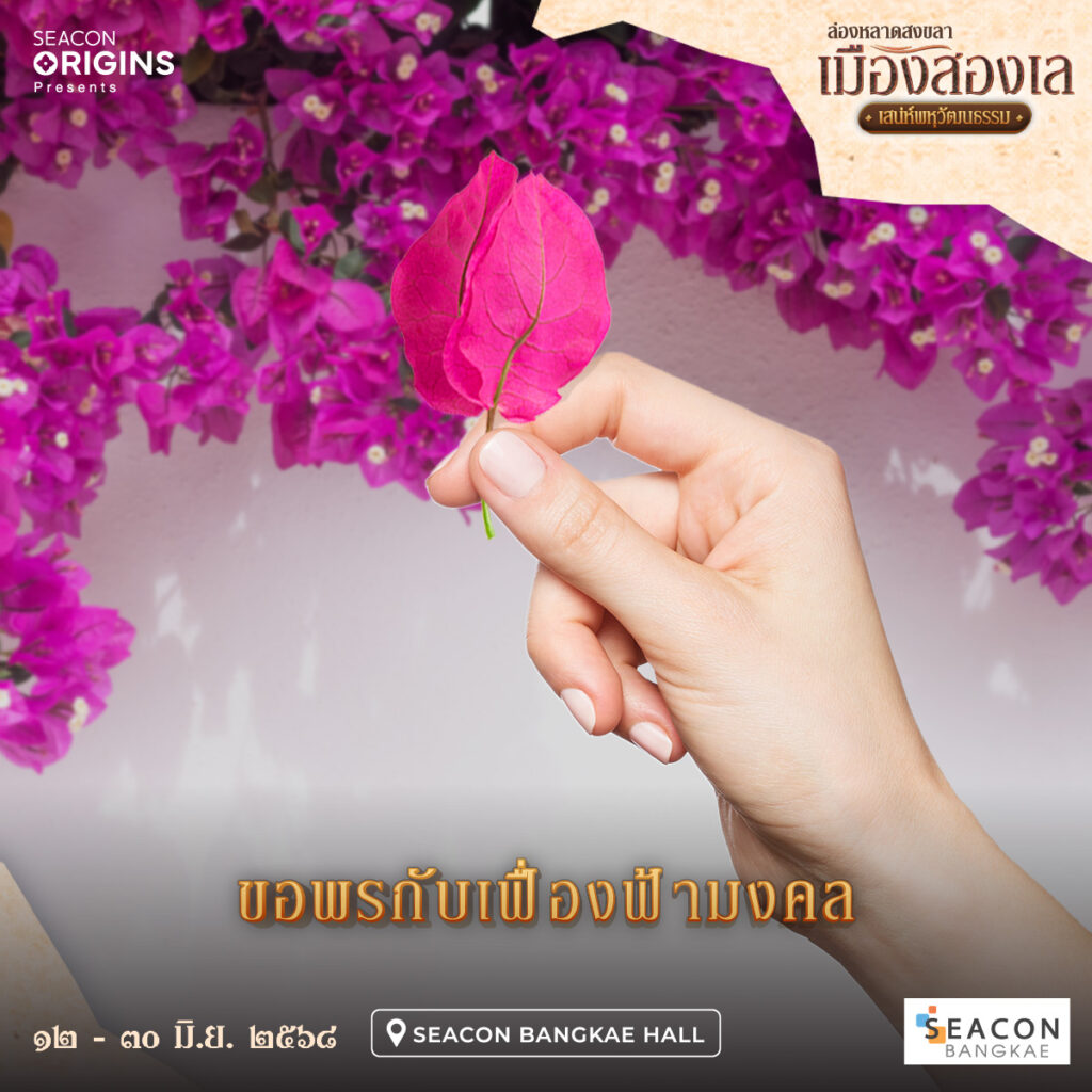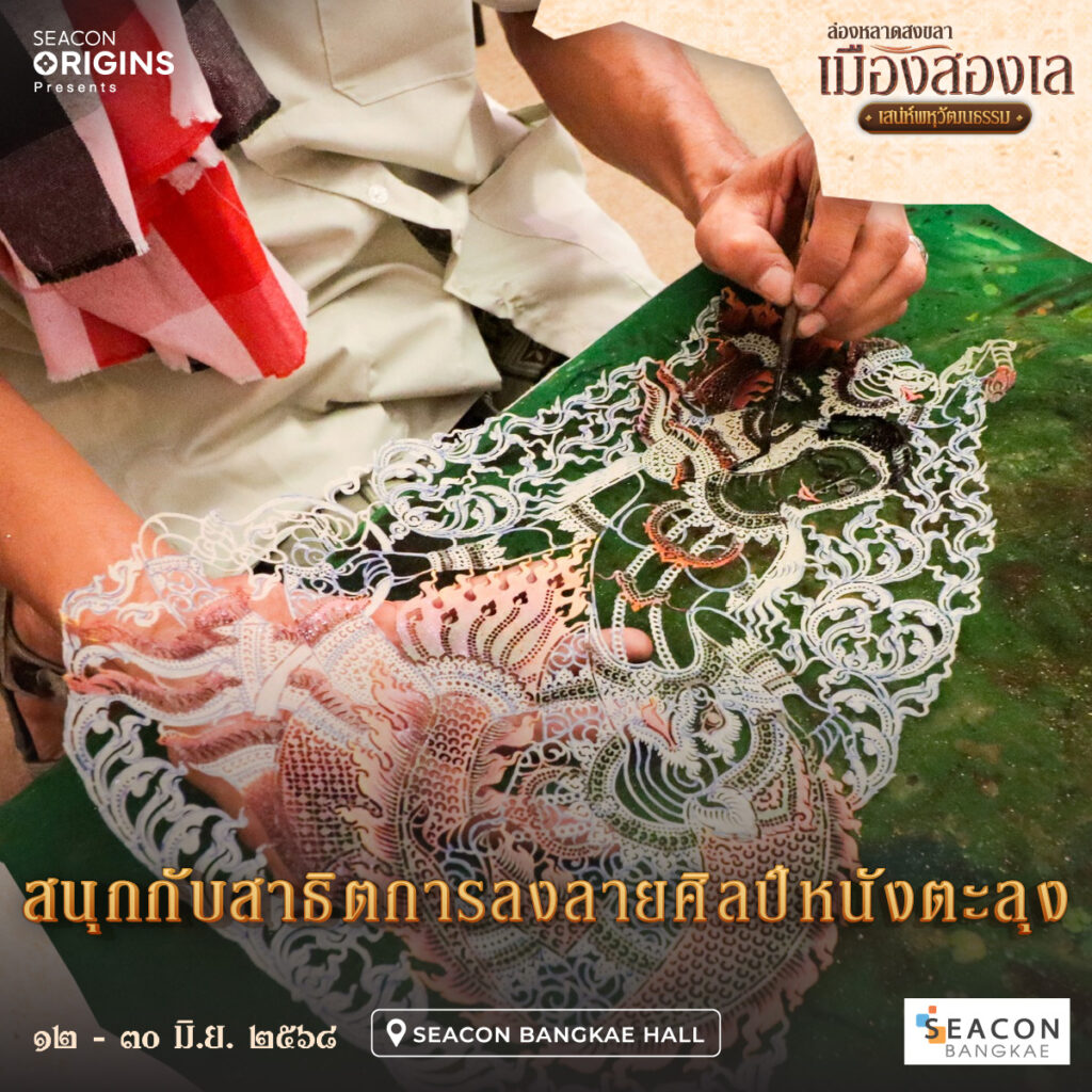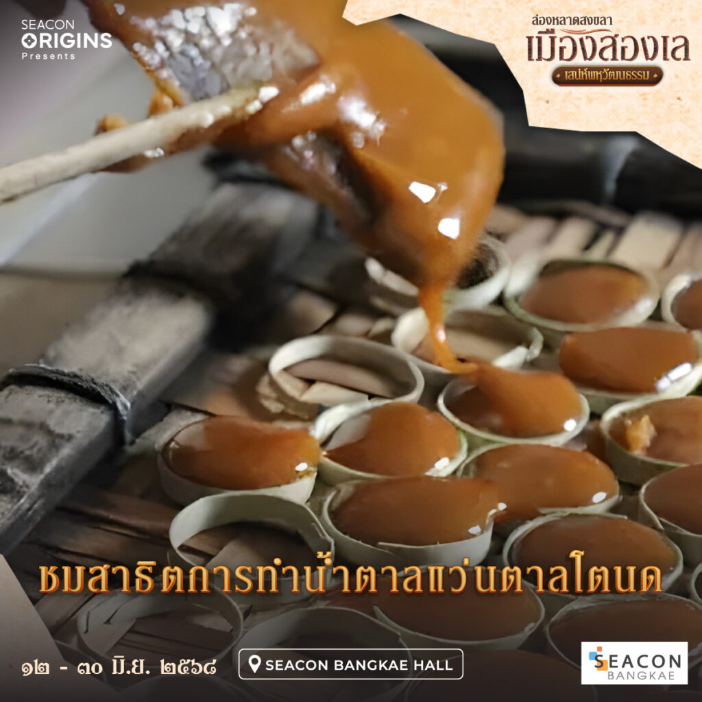 ชมการสาธิตหัตถกรรมพื้นบ้านชาวใต้มากมาย เช่น การสาธิตทำน้ำตาลแว่นตาลโตนด, การสาธิตการสานไม้ไผ่และกระจูด, การสาธิตลงลายศิลป์บนพัดหนังตะลุง และร่วมสนุกกับกิจกรรมเขียนข้อความเฟื่องฟ้ามงคลซึ่งเป็นดอกไม้ประจำจังหวัดสงขลา ลิ้มรสอาหารจากท้องถิ่นหลาดใต้หรอยแรงแท้ๆ พร้อมเลือกซื้อสินค้าของที่ระลึกจากร้านวิสาหกิจชุมชนและกลุ่มแม่บ้านเกษตรกรชาวใต้มากมาย สัมผัสมนต์เสน่ห์เมืองสงขลา เรียนรู้วิถีชีวิตท้องถิ่นเมืองสองเลชายแดนใต้ ในงาน “ล่องหลาดสงขลา เมืองสองเล เสน่ห์พหุวัฒนธรรม” ตั้งแต่วันที่ 12 – 30 มิถุนายน 2568 ณ ซีคอน บางแค ฮอลล์ ศูนย์การค้าซีคอน บางแค ถนนเพชรเกษม MRT สถานีภาษีเจริญ สอบถามข้อมูลเพิ่มเติม โทร 02 – 454 – 7777 หรือ www.facebook.com/SeaconBangkaeFanPage