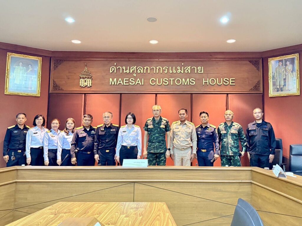 ต่อมา ได้เดินทางไปยังด่านศุลกากรแม่สาย เพื่อติดตามมาตรการควบคุมการส่งออกสินค้าผ่านแดน และสารเคมีที่อาจใช้เป็นสารตั้งต้นในการผลิตยาเสพติด พร้อมตรวจเยี่ยมการปฏิบัติงานของหน่วย ณ จุดผ่านแดนแม่สาย 2 ซึ่งเป็นส่วนหนึ่งของยุทธศาสตร์ “STOP”