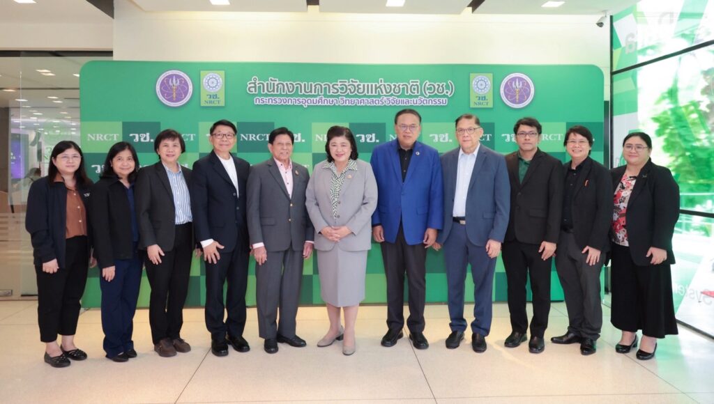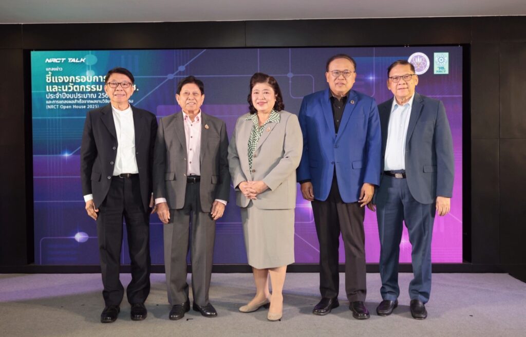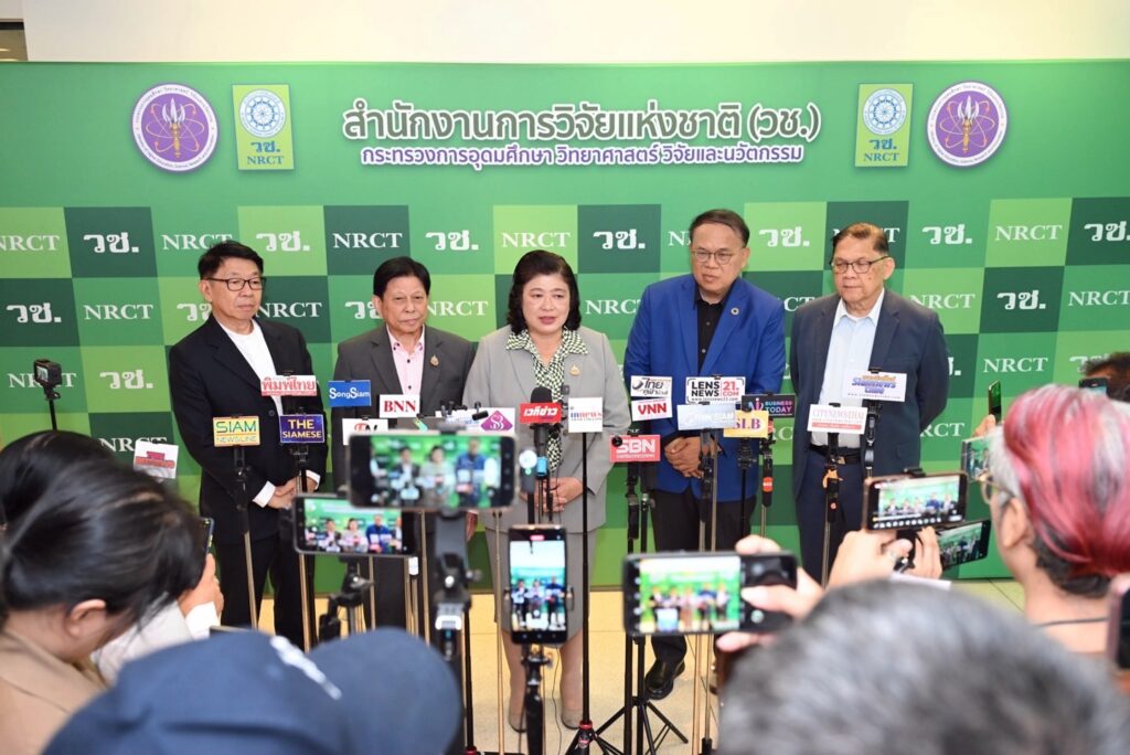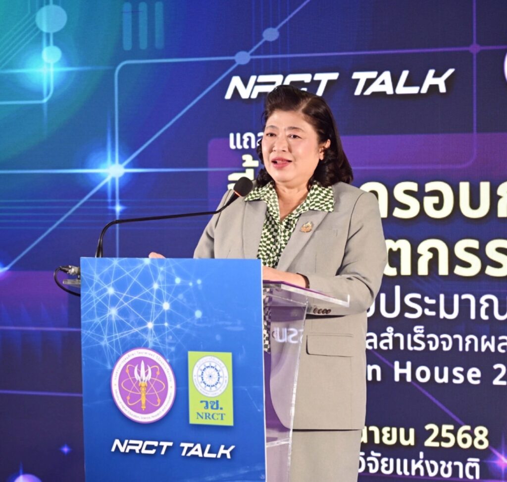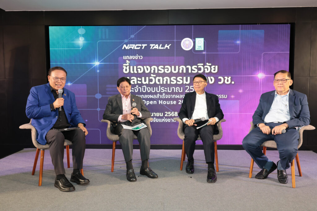 เมื่อวันที่ 15 มิถุนายน 2568 สำนักงานการวิจัยแห่งชาติ(วช.) กระทรวงการอุดมศึกษา วิทยาศาสตร์ วิจัยและนวัตกรรม จัดงานแถลงข่าว NRCT Talk เรื่อง “ชี้แจงกรอบการวิจัยและนวัตกรรม ของ (วช.) ประจำปีงบประมาณ 2569 และการแถลงผลสำเร็จจากผลงานวิจัยและนวัตกรรม (NRCT Open House 2025)” โดย ดร.วิภารัตน์ ดีอ่อง ผู้อำนวยการสำนักงานการวิจัยแห่งชาติ เป็นประธานในพิธี พร้อมด้วย ดร.วิจารย์ สิมาฉายา กรรมการดำเนินงานสนับสนุนการวิจัยและนวัตกรรมประเด็นเป้าหมายด้านการพัฒนาสุขภาพสังคมและสิ่งแวดล้อม,ศาสตราจารย์ ดร.สนิท อักษรแก้ว ประธานคณะกรรมการดำเนินงานสนับสนุนการวิจัยและนวัตกรรมประเด็นเป้าหมายด้านการพัฒนาสุขภาพสังคมและสิ่งแวดล้อม,ศาสตราจารย์ ดร.วันชัย ดีเอกนามกูล กรรมการด้านการพัฒนาเส้นทางอาชีพนักวิจัย และรองศาสตราจารย์ ดร.กล้าณรงค์ ศรีรอต ประธานคณะกรรมการดำเนินงานสนับสนุนการวิจัยและนวัตกรรมประเด็นเป้าหมายด้านการพัฒนาเศรษฐกิจและการเกษตร ร่วมเสวนาวิชาการ ณ ศูนย์สารสนเทศกลางด้านวิทยาศาสตร์ วิจัยและนวัตกรรม (วช.)