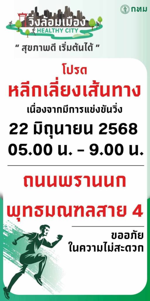ทั้งนี้ กิจกรรมวิ่งล้อมเมืองในเดือนมิถุนายน ยังมีอีก 2 ครั้ง คือ วันที่ 22 มิ.ย. 68 ณ ศูนย์กลางตลาดดอกไม้ปากคลองตลาดใหม่ ถนนพรานนก-พุทธมณฑลสาย 4 เขตตลิ่งชัน โดย โรงพยาบาลราชพิพัฒน์ และวันที่ 29 มิ.ย. 68 ณ สวนวชิรเบญจทัศ (สวนรถไฟ) เขตจตุจักร โดยโรงพยาบาลกลาง