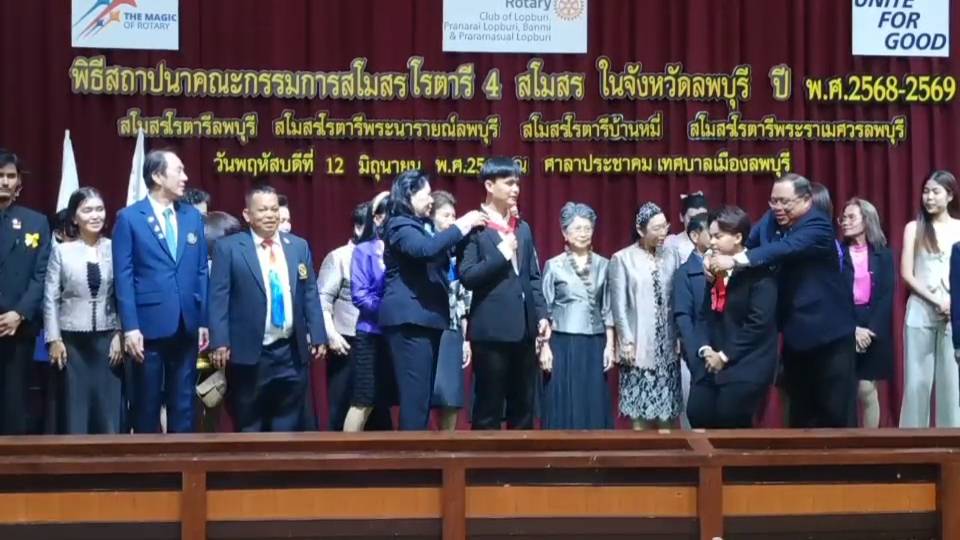ณ ศาลาประชาคมเทศบาลเมืองลพบุรี จัดพิธีสถาปนาสโมสรโรตารี 4 สโมสรในจังหวัดลพบุรี หรือ 4 พี่น้อง ปี 2568-2569
