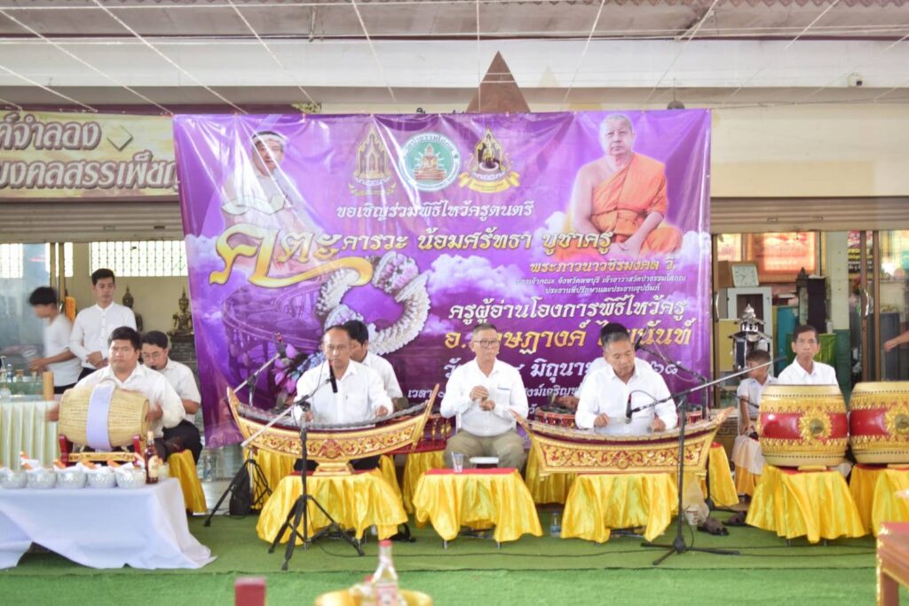 วันที่ 14 มิถุนายน 2568 ที่บริเวณโดมอเนกประสงค์ วัดป่าธรรมโสภณ อำเภอเมืองลพบุรี จังหวัดลพบุรี พระภาวนาวชิรมงคล วิ. รองเจ้าคณะจังหวัดลพบุรี เจ้าอาวาสวัดป่าธรรมโสภณ เป็นประธานฝ่ายสงฆ์ ว่าที่ร้อยตรี ทรงพล แป้นแก้ว รองผู้ว่าราชการจังหวัดลพบุรี เป็นประธานฝ่ายฆราวาสในการประกอบพิธีไหว้ครูดนตรี (คีตะคารวะ น้อมศรัทธา บูชาครู) ในโครงการสืบสานงานบูชาครูดุริยางคศิลป์ ประจำปี พ.ศ. 2568 โดยมีนางกฤษณา สิทธิราช วัฒนธรรมจังหวัดลพบุรี พร้อมด้วยหัวหน้าส่วนราชการ คณาจารย์ บุคลากรทางด้านดนตรีจากสถาบันการศึกษาต่าง ๆ ตลอดจน นักเรียนนักศึกษาเข้าร่วม ในการนี้ อาจารย์กฤษฎางค์ ไวยนันท์ อาจารย์อาวุโสทางด้านดนตรีไทย สังกัดคณะมนุษยศาสตร์และสังคมศาสตร์ มหาวิทยาลัยราชภัฏเทพสตรี ให้เกียรติเป็นครูผู้อ่านโองการทำพิธีไหว้ครู