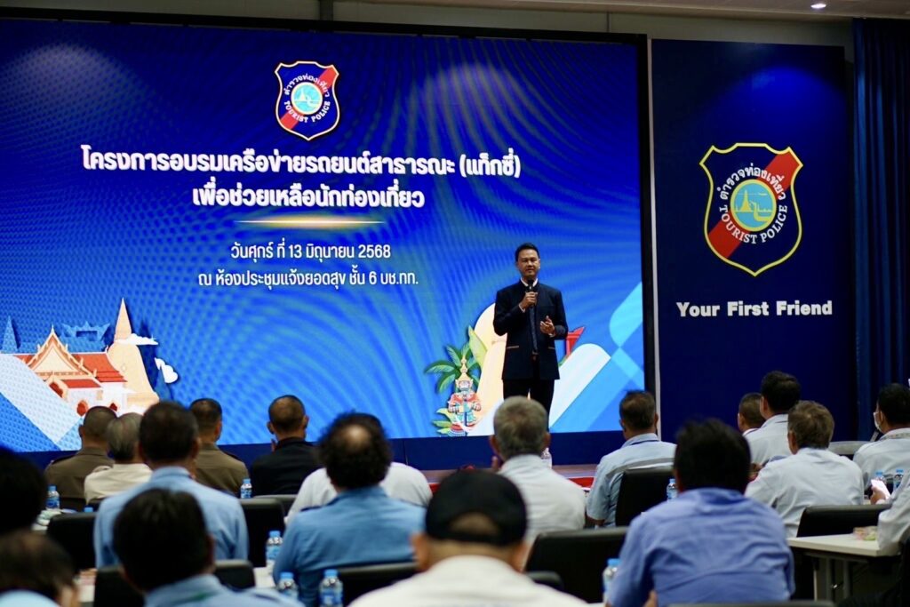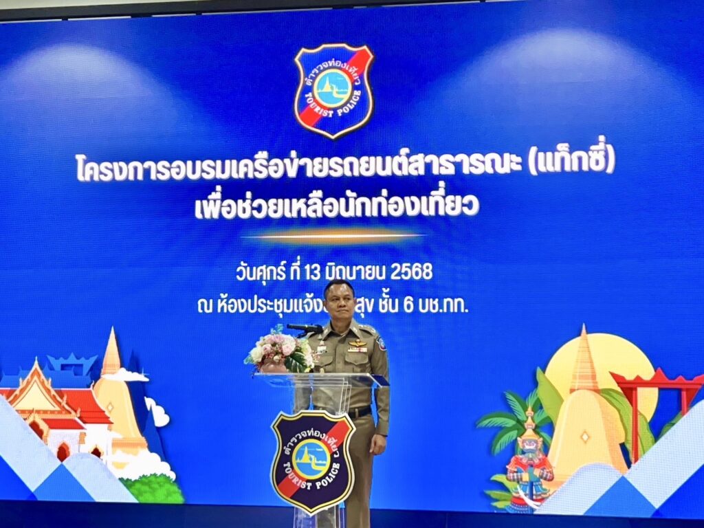 เมื่อวันที่ 13 มิ.ย.2568 : พล.ต.ท.ศักย์ศิรา เผือกอ่ำ ผู้บัญชาการตำรวจท่องเที่ยว ร่วมกับนายจาตุรนต์ ภักดีวานิช อธิบดีกรมการท่องเที่ยว ผู้แทนกรมการขนส่งทางบก ผู้แทนกองบังคับการตำรวจจราจร และสมาพันธ์ผู้ขับรถยนต์สาธารณะแห่งประเทศไทย จัด “การอบรมเครือข่ายรถยนต์สาธารณะ (แท็กซี่) เพื่อช่วยเหลือนักท่องเที่ยว” ให้แก่ผู้ขับขี่รถแท็กซี่กว่า 120 ราย ซึ่งให้บริการในพื้นที่สนามบินสุวรรณภูมิและสนามบินดอนเมือง เพื่อเป็นเครือข่ายสนับสนุนการดูแลความปลอดภัยให้กับนักท่องเที่ยว ลดปัญหาการหลอกลวง การเอารัดเอาเปรียบผู้โดยสาร และสร้างความตระหนักถึงความสำคัญของการสร้างภาพลักษณ์ที่ดีให้กับประเทศ