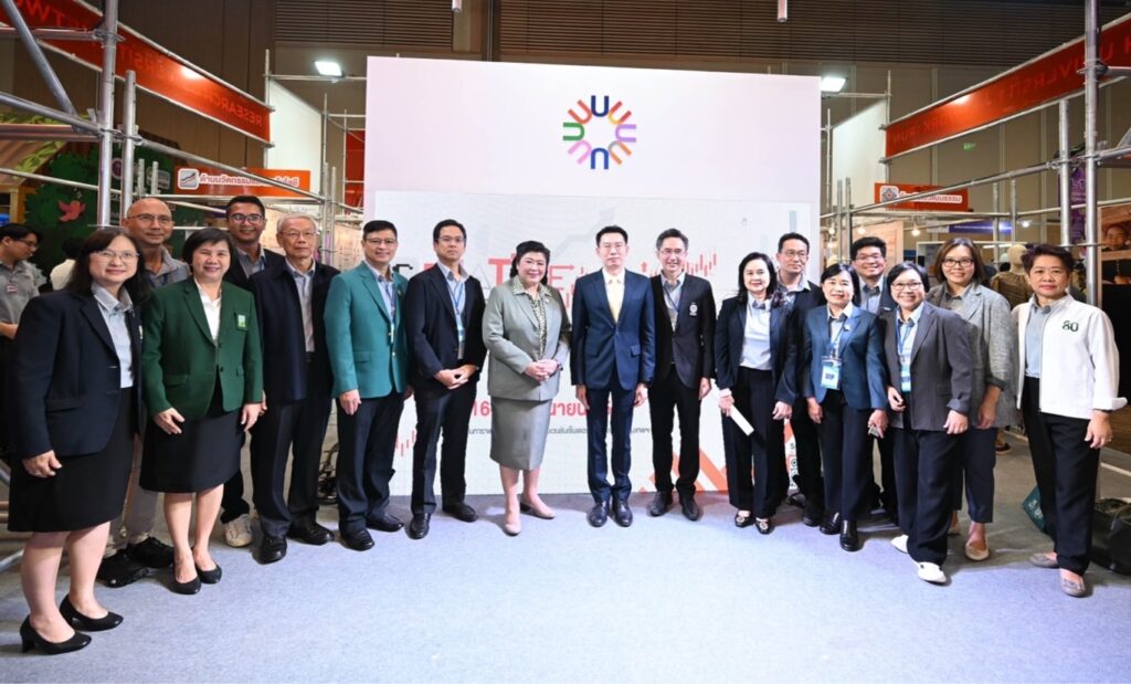 เมื่อวันที่ 16 มิถุนายน 2568 : ศาสตราจารย์ ดร.ศุภชัย ปทุมนากุล ปลัดกระทรวงการอุดมศึกษา วิทยาศาสตร์ วิจัยและนวัตกรรม เป็นประธานในพิธีเปิดนิทรรศการแสดงผลงานวิจัยและนวัตกรรม ภายใต้หัวข้อ “เศรษฐกิจสร้างสรรค์เพื่ออนาคตประเทศไทย” (Creative Economy for Thailand Tomorrow) พร้อมด้วย ดร.วิภารัตน์ ดีอ่อง ผู้อำนวยการสำนักงานการวิจัยแห่งชาติ รองศาสตราจารย์ ดร.ม.ล.พินิตพันธุ์ บริพัต ประธานเครือข่ายพันธมิตรมหาวิทยาลัยเพื่อการวิจัย และเครือข่ายพันธมิตรมหาวิทยาลัยเพื่อการวิจัย (RUN) ประกอบด้วยมหาวิทยาลัยธรรมศาสตร์ มหาวิทยาลัยนเรศวร จุฬาลงกรณ์มหาวิทยาลัย มหาวิทยาลัยสงขลานครินทร์ มหาวิทยาลัยขอนแก่นมหาวิทยาลัยเชียงใหม่ มหาวิทยาลัยมหิดล และมหาวิทยาลัยเกษตรศาสตร์ให้การต้อนรับ ซึ่งจัดแสดงภายในงาน “มหกรรมงานวิจัยแห่งชาติ 2568” ณ โรงแรมเซ็นทาราแกรนด์ และบางกอกคอนเวนชันเซ็นเตอร์ เซ็นทรัลเวิลด์ กรุงเทพฯ