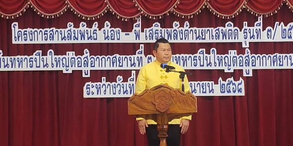 นายปรัชญา เปปะตัง รองผู้ว่าราชการจังหวัดลพบุรี ประธานในพิธีเปิดโครงการ “สานสัมพันธ์ น้องพี่ เสริมพลังต้านยาเสพติด”