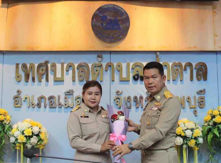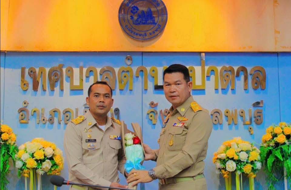 ได๋มอบช่อดอกไม้แสดงความยินดีกับนายกเทศมนตรีตำบลป่าตาล