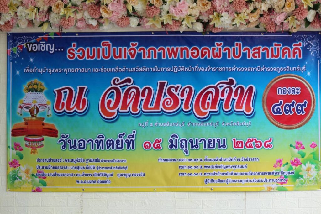 วันอาทิตย์ที่ 15 มิถุนายน 2568 เวลา 11.00 น. นายสุเมธ ธีรนิติ ผู้ว่าราชการจังหวัดสิงห์บุรี เป็นประธานพิธีทอดผ้าป่าสามัคคี ณ วัดปราสาท ตำบลอินทร์บุรี อำเภออินทร์บุรี จังหวัดสิงห์บุรี โดยมีนางวาสนา ธีรนิติ นายกเหล่ากาชาดจังหวัดสิงห์บุรี หัวหน้าส่วนราชการ ดร.อำนาจ( ประธานชมรมชาวใต้จังหวัดสิงห์บุรี) ท่านเจ้าพนักงานที่ดินจังหวัดสิงห์บุรี ท่านผู้บัญชาการเรือนจำจังหวัดสิงห์บุรี ตำรวจที่ เกษียณอายุราชการ และ ตำรวจสถานีภูธธรอำเภออินทร์บุรี กรรมการเหล่ากาชาดจังหวัดสิงห์บุรี ข้าราชการ เจ้าหน้าที่เหล่ากาชาดจังหวัดสิงห์บุรี และประชาชน ร่วมพิธี ณ วัดปราสาทตำบลอินทร์บุรีอำเภออินทร์บุรีจังหวัดสิงห์บุรี