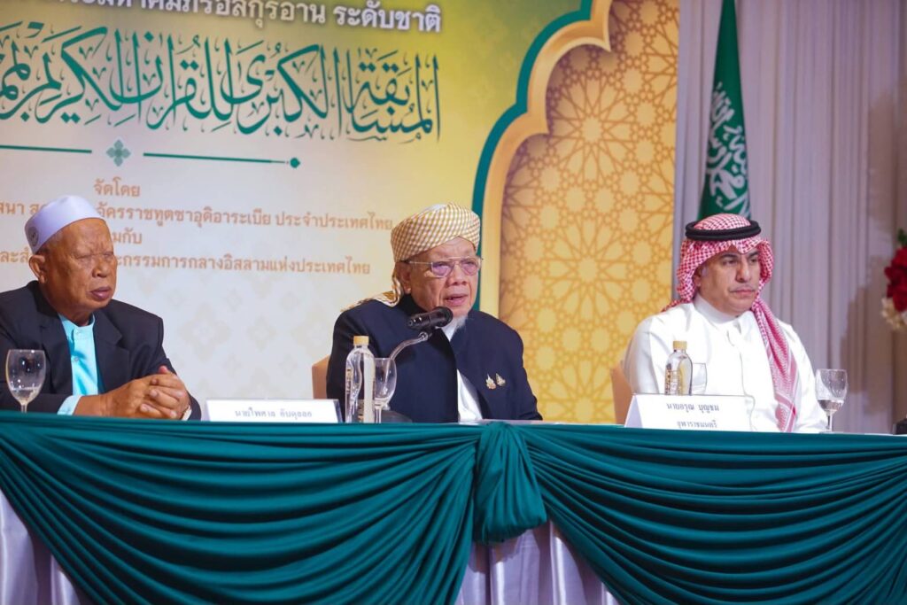 วันที่ 17 มิถุนายน 2568 เวลา 10.00 น. โรงแรมอัลมิรอช ถนนรามคำแหง กรุงเทพมหานคร สำนักงานที่ปรึกษาด้านศาสนา สถานเอกอัครราชทูตซาอุดิอาระเบียประจำประเทศไทย ร่วมกับ สำนักจุฬาราชมนตรี และสำนักงานคณะกรรมการกลางอิสลามแห่งประเทศไทย จัดงานแถลงข่าว “โครงการทดสอบท่องจำพระมหาคัมภีร์อัลกุรอานระดับชาติ ครั้งที่ 2” ณ โรงแรมอัลมีรอซ ถนนรามคำแหง กรุงเทพมหานคร โดยมีนายอรุณ บุญชม จุฬาราชมนตรี นายอับดุลอะซีซ อับดุลเลาะห์ อัลคุเดร อุปทูตซาอุดิอาระเบียประจำประเทศไทย และนายไพศาล อับดุลลอ รองประธานคณะกรรมการกลางอิสลามแห่งประเทศไทย ร่วมให้เกียรติในการแถลงข่าว พร้อมด้วยคณะสื่อมวลชน ผู้แทนองค์กร และแขกผู้มีเกียรติเข้าร่วมงาน