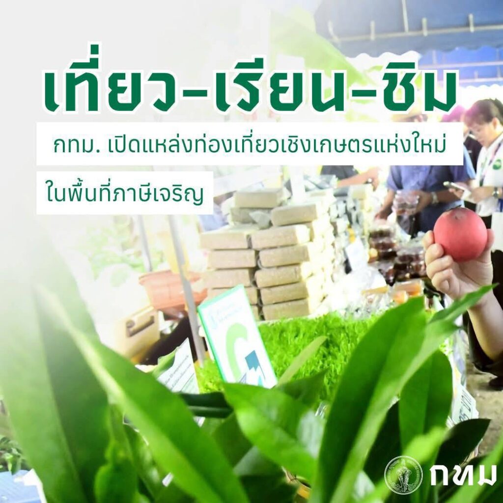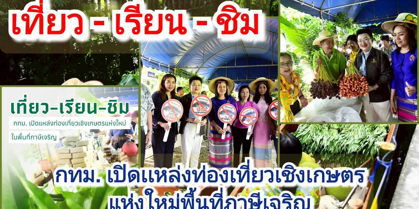 กิจกรรมส่งเสริมการท่องเที่ยวเชิงเกษตรในครั้งนี้ มีวัตถุประสงค์เพื่อส่งเสริมและพัฒนาแหล่งผลิตสินค้าเกษตรให้เป็นแหล่งท่องเที่ยวเชิงเกษตรในพื้นที่กรุงเทพมหานคร ให้มีศักยภาพพร้อมให้บริการแก่นักท่องเที่ยว เพื่อกระตุ้นเศรษฐกิจในชุมชน ก่อให้เกิดรายได้จากการจำหน่ายสินค้าและบริการ การจัดกิจกรรมส่งเสริมการท่องเที่ยวเชิงเกษตร กำหนดดำเนินการ 2 ครั้ง ครั้งละ 1 วัน ครั้งที่ 1 จัดเมื่อวันที่ 4 เม.ย. 68 ณ แปลงแตงโม แขวงกระทุ่มราย เขตหนองจอก ครั้งที่ 2 จัดขึ้นในวันนี้ (17 มิ.ย. 68) ณ ศูนย์เรียนรู้เครือข่าย ศพก. เขตภาษีเจริญ ซอยเทอดไท 81/1 แขวงบางหว้า เขตภาษีเจริญ ภายในงานมีการจัดนิทรรศการของหน่วยงานภาคีต่าง ๆ การออกร้านของเกษตรกร จำนวน 19 ร้านค้า ฝึกอาชีพ (เรียนฟรี) ตลาดน้ำจำลอง ตลอดจนร้านกาแฟในสวนของเกษตรกร
