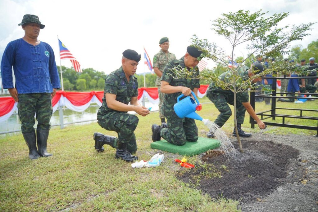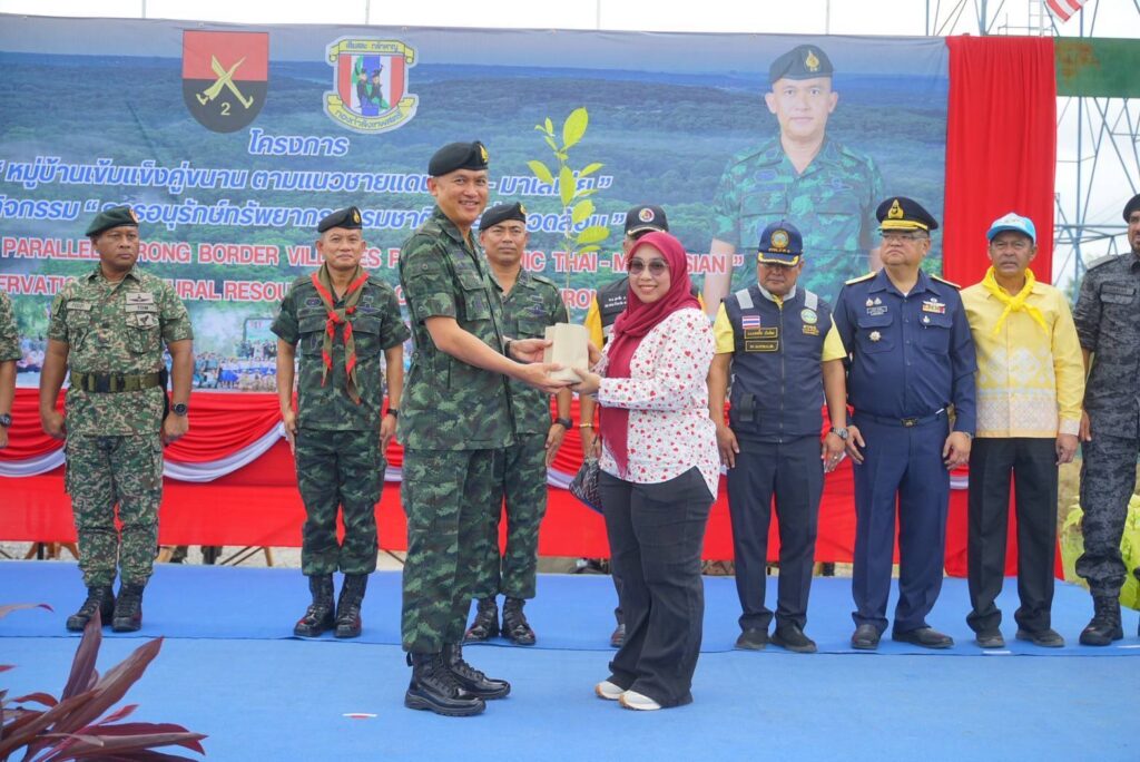 สำหรับกิจกรรม “การอนุรักษ์ทรัพยากรธรรมชาติ และสิ่งแวดล้อมชุมชนร่วมหมู่บ้านเข้มแข็งคู่ขนาน”จัดขึ้นโดยหน่วยทหาร ร.5 พัน.2 ค่ายสมันตรัฐบุรินทร์ เพื่อฟื้นฟูสภาพป่าในพื้นที่ตามแนวชายแดนให้มีความอุดมสมบูรณ์และคงอยู่อย่างยั่งยืน อีกทั้งยังเป็นการสร้างเครือข่ายประชาคมหมู่บ้านเข้มแข็งแบบคู่ขนาน ในการต่อต้านการบุกรุกทำลายทรัพยากรป่าไม้ พร้อมส่งเสริมและปลูกฝังให้ผู้เข้าร่วมกิจกรรมได้นำแนวคิดด้านการอนุรักษ์ทรัพยากรธรรมชาติและสิ่งแวดล้อมไปใช้ให้เกิดประโยชน์ในชีวิตประจำวัน และเป็นการเสริมสร้างความสัมพันธ์อันดีสร้างความร่วมมือและทัศนคติที่ดีต่อกันระหว่างหน่วยงานภาครัฐภาคเอกชนภาคประชาชน และผู้นำทางด้านทหารฝั่งประเทศมาเลเซียอีกด้วย