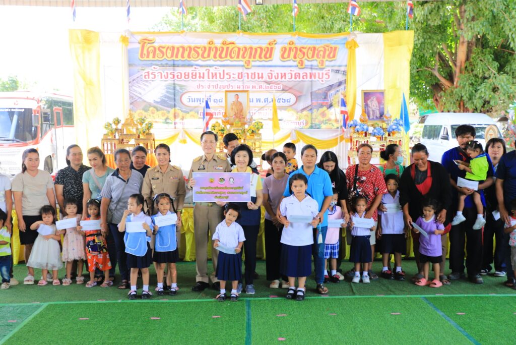 ในการนี้ ผู้ว่าราชการจังหวัดลพบุรี และหัวหน้าส่วนราชการ ได้ร่วมกันมอบเงินกองทุนพัฒนาเด็กชนบทในพระราชูปถัมป์สมเด็จพระเทพรัตนราชสุดาฯ สยามบรมราชกุมารีในการอุปการะเด็กชนบท การมอบเงินสงเคราะห์ (พมจ.) ถุงยังชีพแก่ผู้ประสบปัญหาทางสังคม (กาชาด) จากนั้นได้เยี่ยมชมกิจกรรมการให้บริการประชาชนของส่วนราชการต่าง ๆ อาทิ การมอบเสื้อผ้าและรองเท้า จากสภากาชาดไทย. การรับบริจาคโลหิต จากภาคบริการโลหิตแห่งชาติที่ 2 จังหวัดลพบุรี การออกหน่วยแพทย์เคลื่อนที่จากโรงพยาบาลพัฒนานิคม กิจกรรมทอดผ้าป่ากองทุนแม่ของแผ่นดิน การให้ความรู้ด้านกฎหมาย การออกบูธนิทรรศการและเปิดรับสมัครเข้าร่วมโครงการสังฆประชานุเคราะห์ “หนึ่งร้อย ร้อยดวงใจ” ของคณะสงฆ์จังหวัดลพบุรี การตัดผมฟรี การทำหมันสุนัขและแมว การจำหน่ายสินค้าอุปโภคบริโภคราคาประหยัด และบริการอื่น ๆ ให้ประชาชนในพื้นที่ ทั้งนี้ยังเป็นการพบปะระหว่างผู้บริหารของจังหวัดกับประชาชนในพื้นที่ห่างไกล ในการบำบัดทุกข์ บำรุงสุข สร้างรอยยิ้มให้ประชาชนอีกด้วย