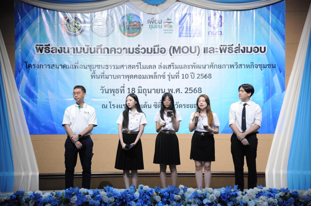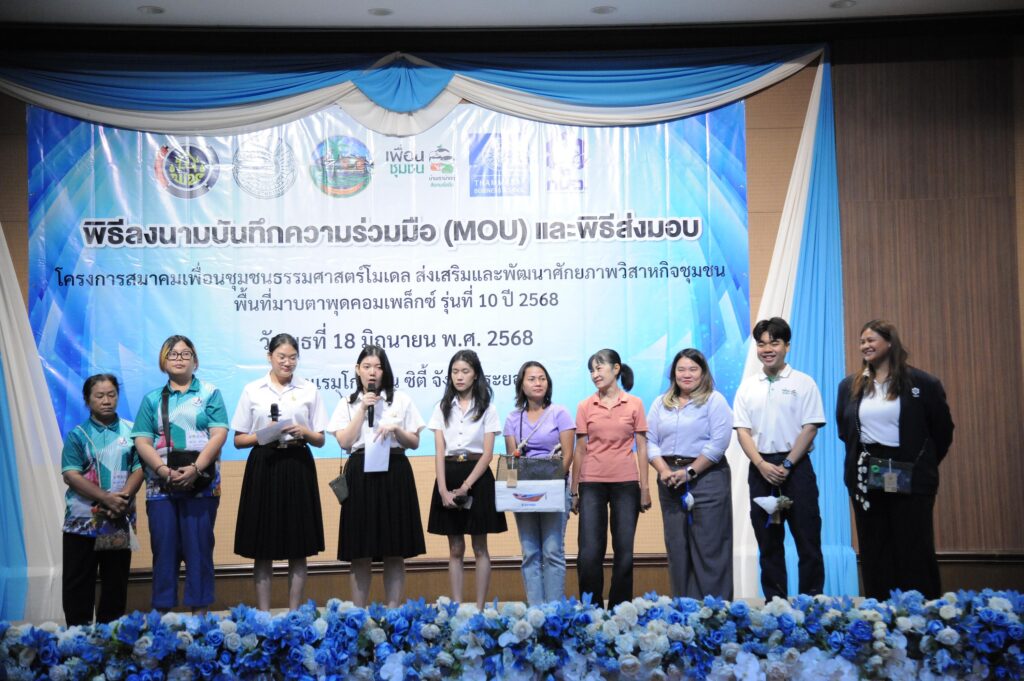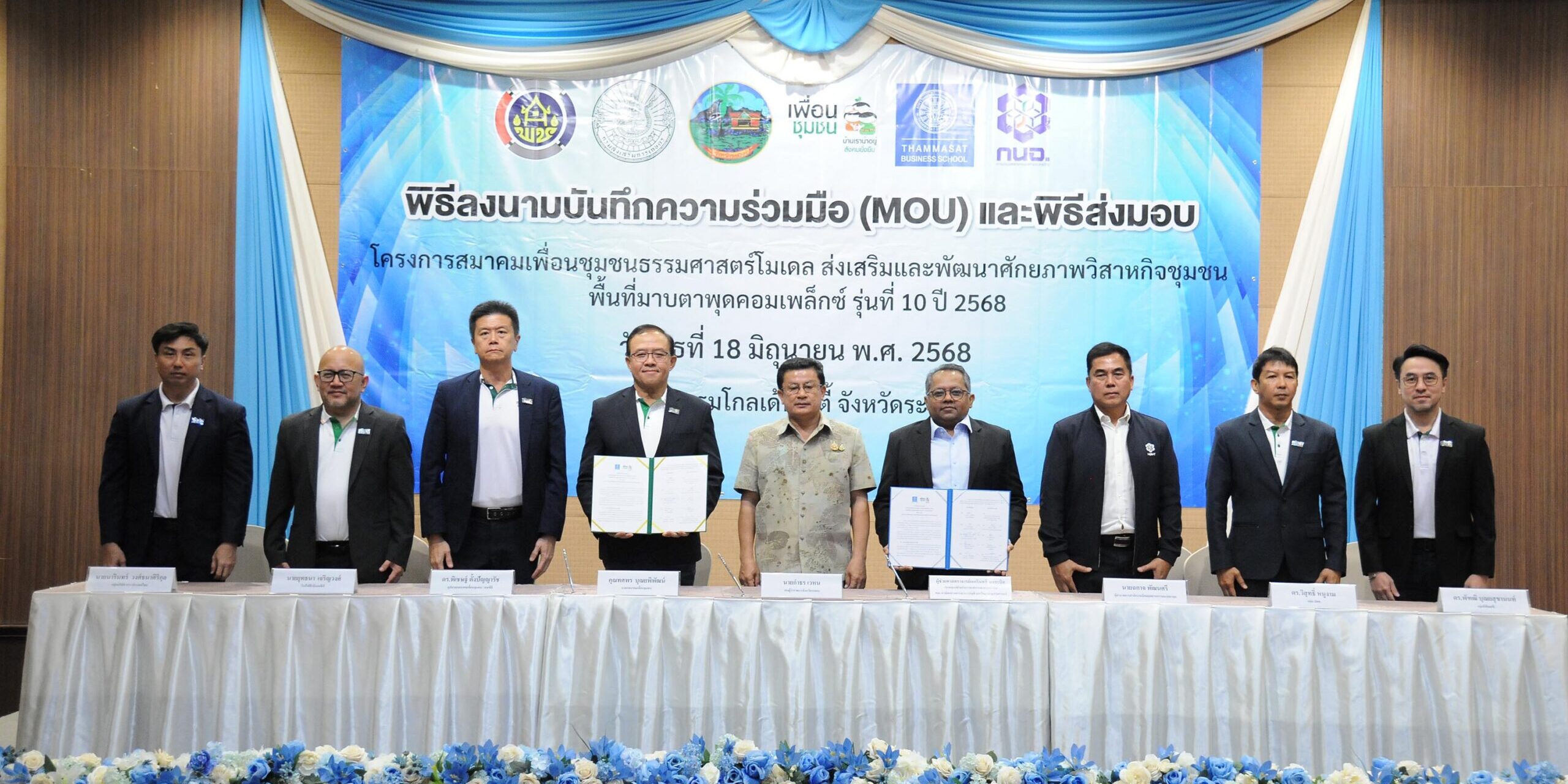 สมาคมเพื่อนชุมชน จับมือคณะพาณิชยศาสตร์และการบัญชี มหาวิทยาลัยธรรมศาสตร์ ดึง 6 กลุ่มวิสาหกิจชุมชน ในจังหวัดระยอง ร่วมโครงการ “สมาคมเพื่อนชุมชนธรรมศาสตร์โมเดล ส่งเสริมและพัฒนาศักยภาพวิสาหกิจชุมชนพื้นที่มาบตาพุดคอมแพล็กซ์ รุ่นที่ 10” ประจำปี 2568 พร้อมเป็นพี่เลี้ยงถ่ายทอด ความรู้ พัฒนาผลิตภัณฑ์คุณภาพ เปิดมุมมองใหม่ ปรับปรุงสินค้ารับเทรนด์ตลาด สร้างรายได้ชุมชนยั่งยืน โชว์ผลงานขับเคลื่อนโครงการฯ 9 รุ่น 64 วิสาหกิจชุมชน สร้างเม็ดเงินสะสมกว่า 108 ล้านบาท หนุนเศรษฐกิจฐานราก จ.ระยอง เข้มแข็ง