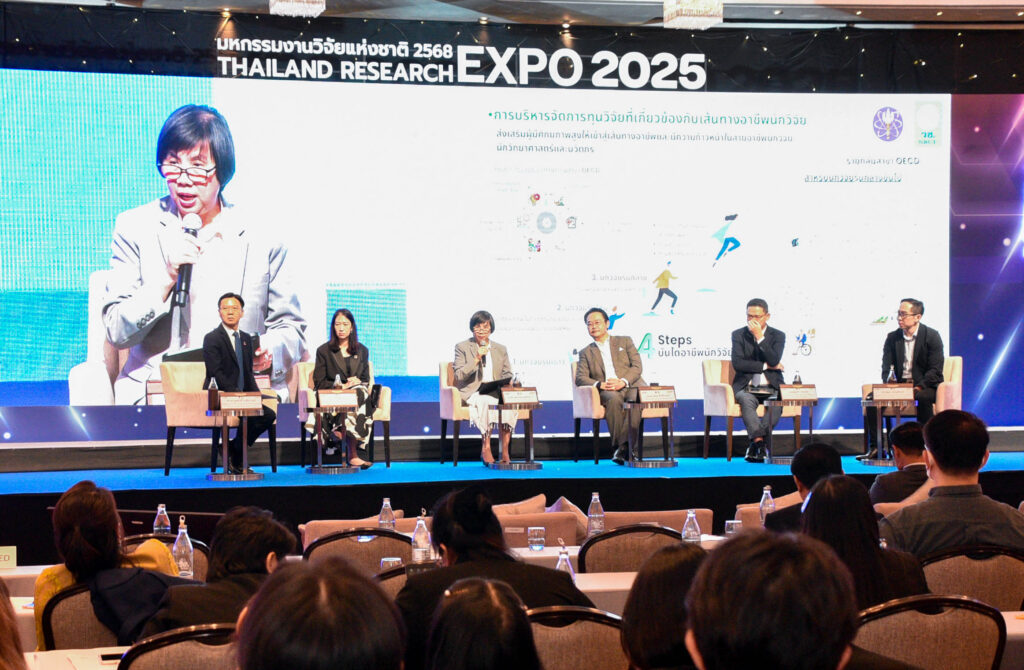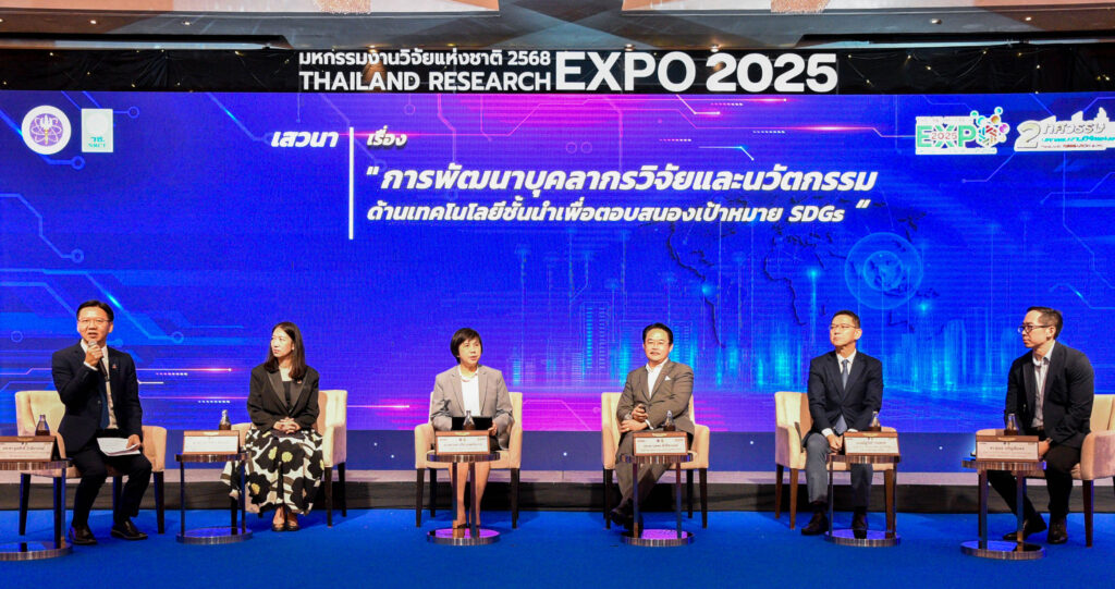 เมื่อวันที่ 18 มิถุนายน 2568 สำนักงานการวิจัยแห่งชาติ (วช.) กระทรวงการอุดมศึกษา วิทยาศาสตร์ วิจัยและนวัตกรรม ร่วมกับหน่วยงานเครือข่ายในระบบวิจัยทั่วประเทศ จัดมหกรรมงานวิจัยแห่งชาติ 2568 (Thailand Research Expo 2025) อย่างยิ่งใหญ่ โดยมุ่งยกระดับศักยภาพการวิจัยของประเทศ พร้อมผลักดันบุคลากรด้านวิจัยและนวัตกรรมให้สามารถพัฒนาเทคโนโลยีขั้นสูง ตอบโจทย์เป้าหมายการพัฒนาที่ยั่งยืน (Sustainable Development Goals: SDGs) ผ่านเวทีเสวนาเรื่อง “การพัฒนาบุคลากรวิจัยและนวัตกรรมด้านเทคโนโลยีชั้นนำเพื่อตอบสนองเป้าหมาย SDGs” ณ ห้องเวิลด์บอลรูม ชั้น 23 โรงแรมเซ็นทาราแกรนด์ และบางกอกคอนเวนชันเซ็นเตอร์ เซ็นทรัลเวิลด์ กรุงเทพฯ
