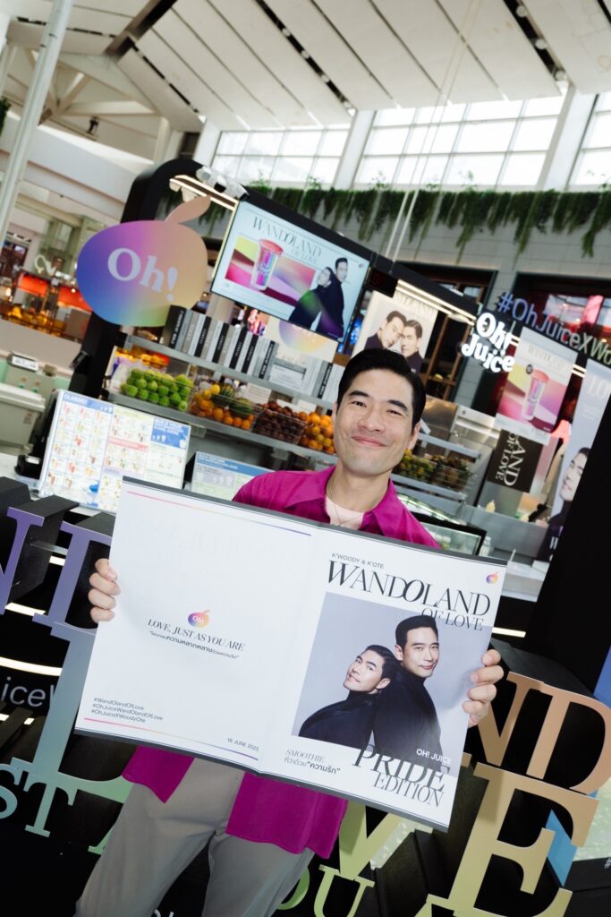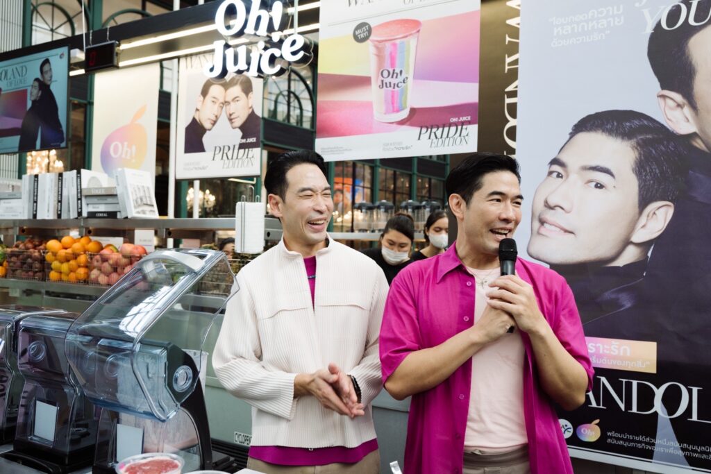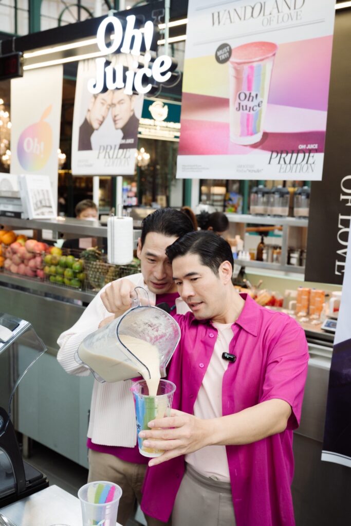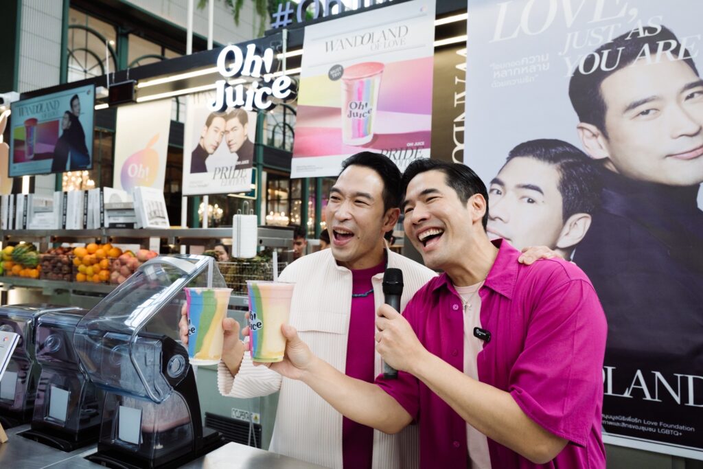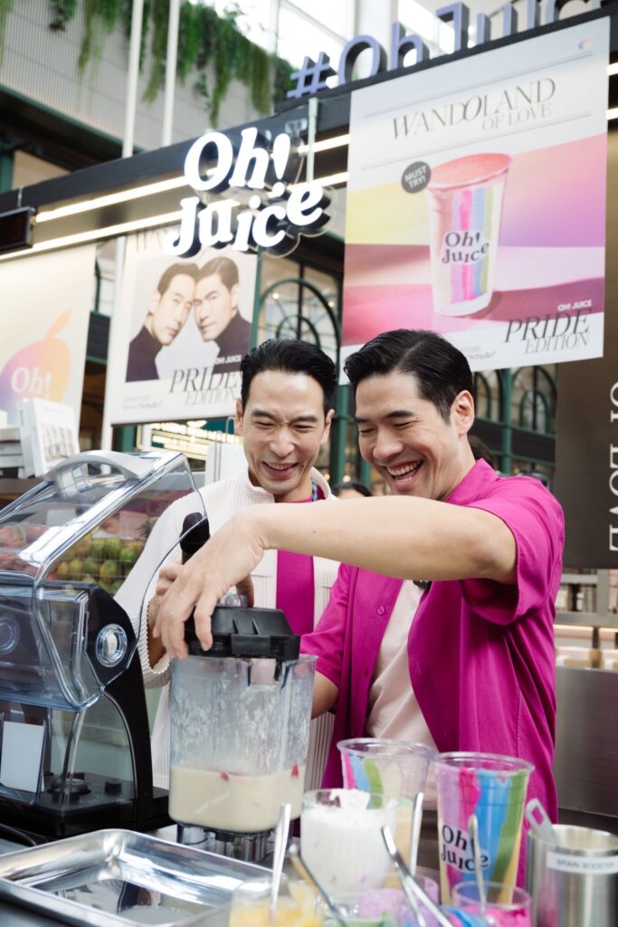 Oh! Juice แบรนด์สมูทตี้สัญชาติไทย ผู้นำเทรนด์น้ำผัก-ผลไม้ปั่นลักชัวรี เพื่อคนรักสุขภาพในเครือของร้านอาหารโอ้กะจู๋ โดย นายชลากร เอกชัยพัฒนกุล นายจิรายุทธ ภูวพูนผล และนายวรเดช สุชัยบุญศิริ ผู้ร่วมก่อตั้ง จัดแคมเปญเพื่อเป็นการโอบกอดความหลากหลายในความรัก ผ่านเมนู “WandOland of Love” Pride Edition สมูตตี้ที่ว่าด้วยความรัก ต้อนรับเดือน Pride Month ผ่านคู่รักคนดัง วู้ดดี้ – วุฒิธร มิลินทจินดา และโอ๊ต – อัครพล จับจิตรใจดล