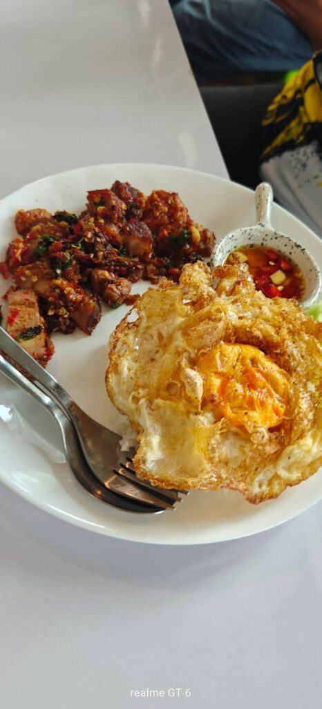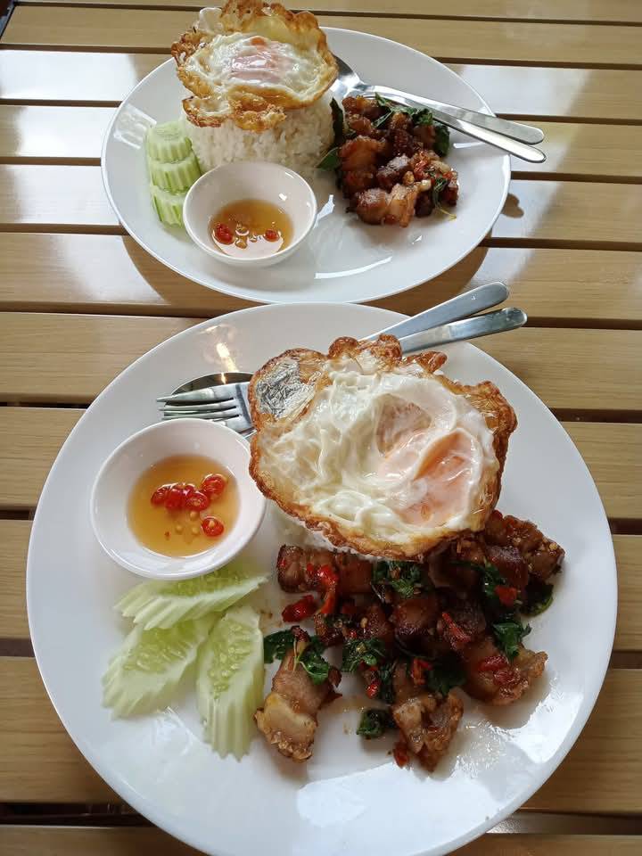 ในเรื่องกระเพราหมูกรอบไข่ดาวเยิ้มๆที่นี่ก็ไม่น้อยหน้าทำอร่อยขึ้นชื่อมาแล้วต้องสั่ง เพราะที่นี่คิดค้นสูตรเด็ดมาดึงดูดลูกค้าโดยเฉพาะ