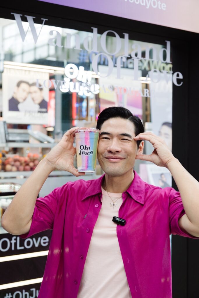 นายชลากร เอกชัยพัฒนกุล หนึ่งผู้ร่วมก่อตั้ง เปิดเผยว่า เพราะรักคือจุดเริ่มต้นของทุกสิ่ง คือเบื้องหลังขุมพลังที่ทำให้เราสามารถทำทุกความปรารถนาให้เป็นจริง Oh! Juice ได้จับมือกับ คุณวู้ดดี้ และคุณโอ๊ต ออกแบบเครื่องดื่มสมูตตี้เมนูใหม่ชื่อว่า WandOland of Love เป็นแคมเปญที่ต้องการสื่อสาร ส่งพลัง และสนับสนุนให้กับทุกความรัก โอบกอดความหลากหลายด้วยความรัก ที่ทั้งคู่ได้ยืนหยัดสื่อสารและเป็นพลังหลักในการสร้างการรับรู้มาโดยตลอด