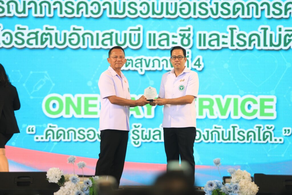 ด้าน นพ.โอภาส การย์กวินพงศ์ ปลัดกระทรวงสาธารณสุข กล่าวว่า ความครอบคลุมการขึ้นทะเบียนผู้ป่วยรายใหม่และ อัตราการกลับมาเป็นซ้ำของวัณโรคในพื้นที่เขตสุขภาพที่ 4 มีแนวโน้มดีขึ้น แต่ยังไม่ถึงค่าเป้าหมาย ขณะที่ผู้ได้รับการคัดกรองโรคไวรัส ตับอักเสบบีและซี เข้าสู่กระบวนการรักษาและได้รับยาเพียงร้อยละ 40.93 ของผู้ที่มีผลการตรวจยืนยันทั้งหมด อีกทั้งพบกลุ่มเสี่ยงและกลุ่มป่วยโรคเบาหวาน ความดันโลหิตสูง สูงกว่าภาพรวมประเทศ จึงมีการจัด "One Day Service" จึงเป็นระบบการคัดกรองรูปแบบใหม่ในการให้บริการเชิงรุก ยึดประชาชนเป็นศูนย์กลางใน 1 วัน คัดกรองโรคตามความเสี่ยงได้หลายโรคประชาชนทราบผลได้ทันที่ ลดระยะเวลาการรอคอย ลดค่าใช้จ่ายในการเดินทาง ลดการแพร่เชื้อในชุมชน โดยดำเนินการทั้งใน ชุมชน เรือนจำ โรงงาน สถานประกอบการ และย่านการค้าพื้นที่เขตเมือง ในพื้นที่เขตสุขภาพที่ 4 ทั้ง 8 จังหวัด ด้วยการ มีส่วนร่วมของเครือข่าย ซึ่งหากดำเนินการได้ครอบคลุมจะสามารถลดภาระค่าใช้จ่ายของภาครัฐในการรักษาพยาบาลวัณโรคได้มากกว่า 20 ล้านบาทต่อปี และลดค่าใช้จ่ายในการรักษามะเร็งตับจากไวรัสตับอักเสบบีและซีได้ถึง 44 ล้านบาทต่อปี