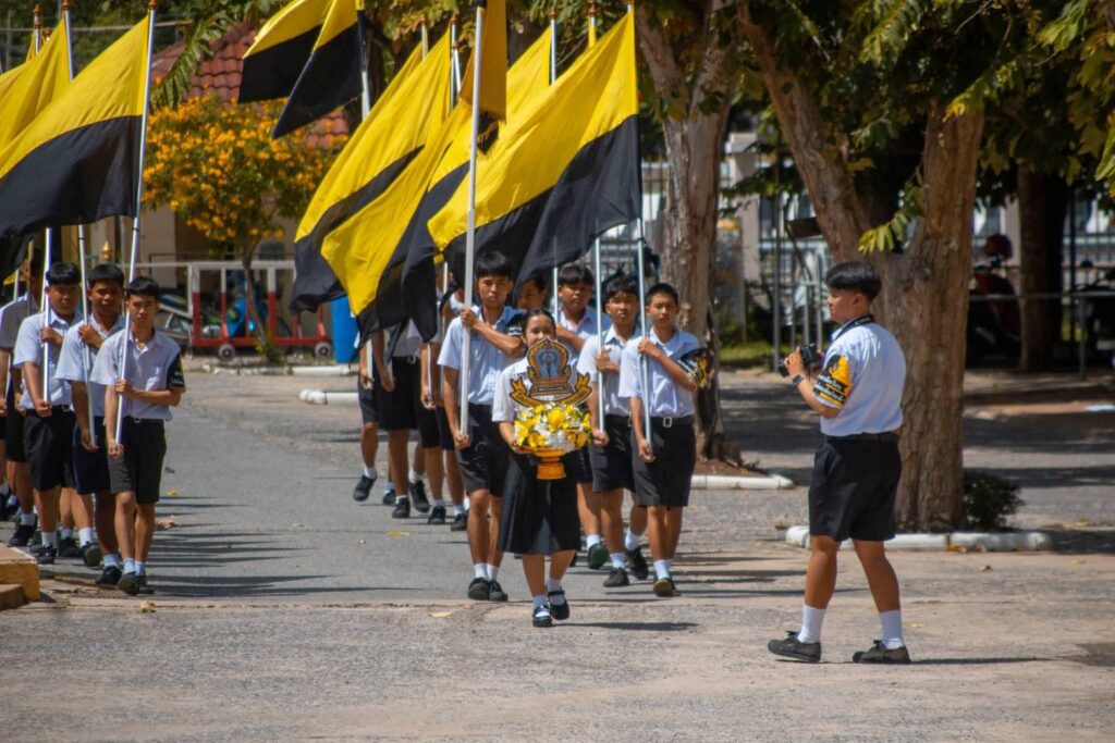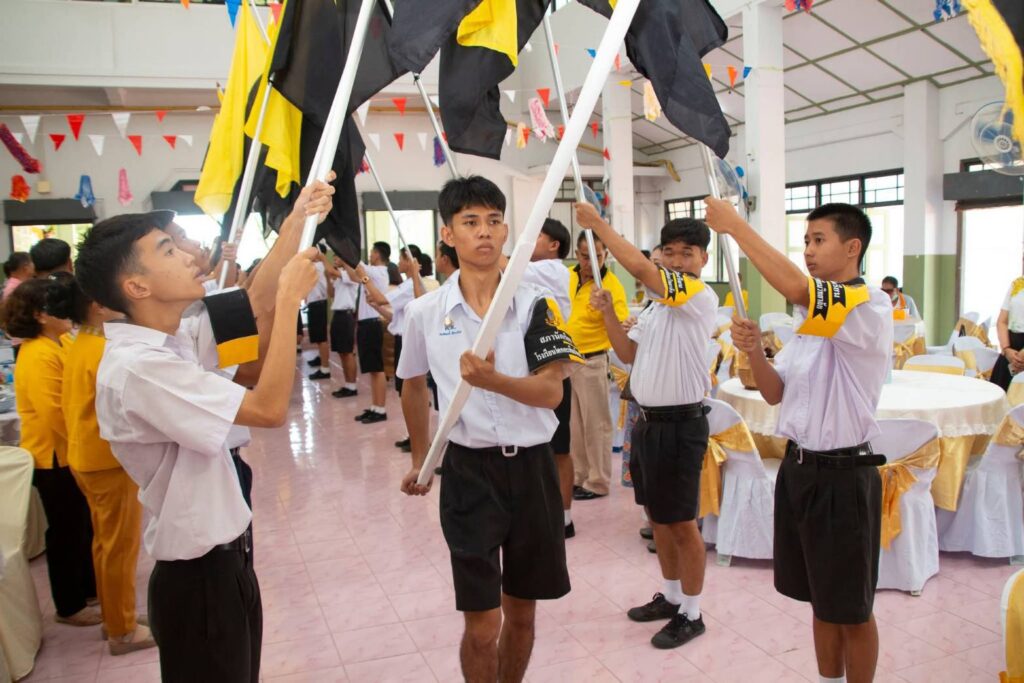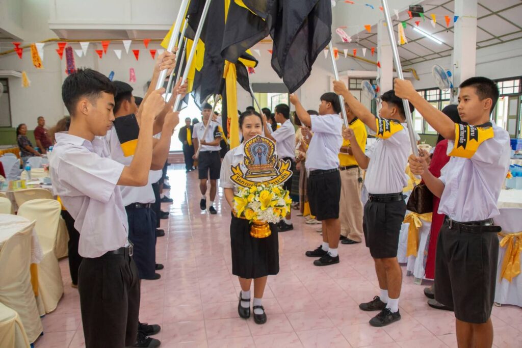 ร่วมพิธีทำบุญเเละทอดผ้าป่า เพื่อการศึกษาเนื่องในวันคล้ายวันสถาปนาโรงเรียนโคกกระเทียมวิทยาลัย