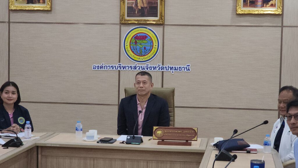 เมื่อวันที่ 24 มิถุนายน 2568 ที่ห้องประชุมมหาหงส์ สำนักงานองค์การบริหารส่วนจังหวัดปทุมธานี อ.เมือง จ.ปทุมธานี พล.ต.ต.นภันต์วุฒิ เลี่ยมสงวน ที่ปรึกษาพิเศษนายกองค์การบริหารส่วนจังหวัดปทุมธานี เป็นประธาน ในการประชุมเตรียมความพร้อม เข้าร่วมการแข่งขันฟุตบอลอาวุโส องค์การบริหารส่วนจังหวัด ชิงแชมป์ประเทศไทย (Senior Football PAO Thailand Championship 2025) โดยมีคณะกรรมการด้านการส่งเสริมและพัฒนากีฬา อบจ.ปทุมธานี เข้าร่วมประชุม