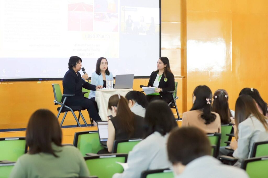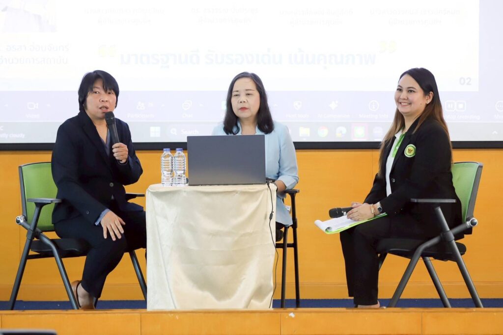 เมื่อวันที่ 25 มิถุนายน 2568 กรมวิทยาศาสตร์บริการ (วศ.) กระทรวงการอุดมศึกษา วิทยาศาสตร์ วิจัยและนวัตกรรม (อว.) จัดกิจกรรมเสวนาประสากรมวิทย์ฯ บริการ เรื่อง “ปลดล็อกงานวิจัยจากแลปสู่ตลาด ด้วยมาตรฐานและการรับรองผลิตภัณฑ์” โดยมี ดร.อรวรรณ ปิ่นประยูร นักวิทยาศาสตร์เชี่ยวชาญ ผู้อำนวยการศูนย์พัฒนามาตรฐาน และนางสาวดวงกมล เชาวน์ศรีหมุด นักวิทยาศาสตร์ชำนาญการพิเศษ ผู้อำนวยการศูนย์ตรวจและรับรองคุณภาพผลิตภัณฑ์ จากสถาบันพัฒนามาตรฐานและตรวจสอบรับรอง มาเป็นวิทยากร ณ ห้องประชุมวิทยวิถี ชั้น 6 อาคาร ตั้ว ลพานุกรม กรมวิทยาศาสตร์บริการ และผ่านระบบ Zoom ออนไลน์