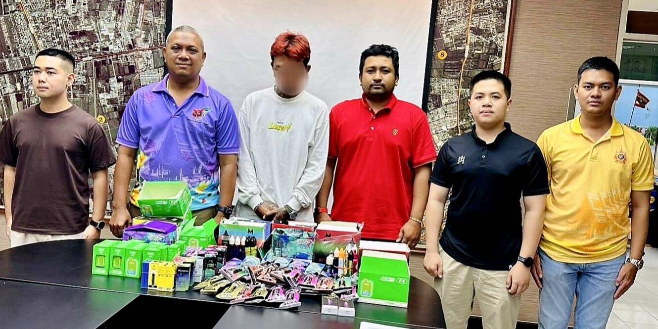 ข้อหา “ฝ่าฝืนคำสั่งคณะกรรมการว่าด้วยความปลอดภัยของสินค้าและบริการ เรื่อง ห้ามผลิตเพื่อขาย ห้ามขายหรือห้ามให้บริการสินค้า บารากู่ บารากู่ไฟฟ้า หรือบุหรี่ไฟฟ้าหรือตัวยา บารากู่ น้ำยาสำหรับเติมบารากู่ไฟฟ้า หรือบุหรี่ไฟฟ้า” พร้อมของกลาง หัวเติมบุหรี่ไฟฟ้า(พอต) บุหรี่ไฟฟ้าแบบใช้แล้วทิ้ง น้ำยาเติมบุหรี่ไฟฟ้า รวม 166 ชิ้น จับกุมได้ที่บริเวณหน้าห้างสรรพสินค้า บิ๊กซี สาขาเพชรเกษม แขวงหลักสอง เขตบางแค กรุงเทพมหานคร