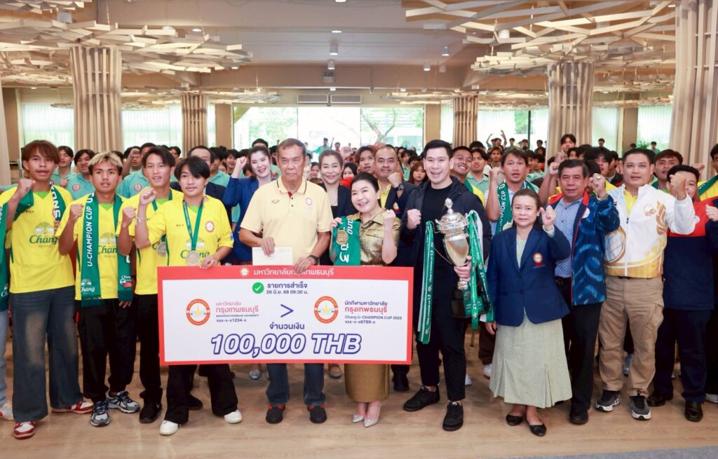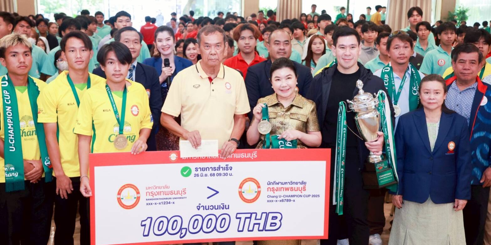 โดยการมอบเงินรางวัลให้กับทีมแชมป์ฟุตบอล Chang U-CHAMPION CUP 2025 เป็นการยกย่องและเชิดชูเกียรติแก่ทีมนักกีฬาที่ได้แสดงความสามารถอย่างโดดเด่นในการแข่งขันครั้งนี้ ซึ่งภายในงานมีคณะผู้บริหาร คณาจารย์ และนักศึกษา และทีมแชมป์ฟุตบอล เข้าร่วมงาน และบันทึกความทรงจำอันมีค่าของผลงานนี้ ซึ่งมหาวิทยาลัยกรุงเทพธนบุรี พร้อมส่งเสริมการพัฒนานักศึกษาให้เป็นบัณฑิตที่มีคุณภาพ มีความเป็นเลิศทั้งด้านวิชาการและด้านกีฬาสู่สากล