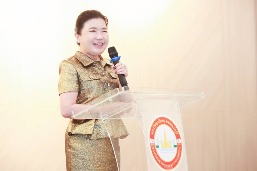 26 มิถุนายน 2568 มหาวิทยาลัยกรุงเทพธนบุรี ศาสตราจารย์ ดร.บังอร เบ็ญจาธิกุล อธิการบดี มหาวิทยาลัยกรุงเทพธนบุรี (มกธ.) พร้อมด้วย รองศาสตราจารย์ ดร.ดวงฤทธิ์ เบ็ญจาธิกุล ชัยรุ่งเรือง สมาชิกสภาผู้แทนราษฎร เป็นประธานในพิธีมอบรางวัลในครั้งนี้ ซึ่งได้แสดงความยินดีและให้กำลังใจแก่ทัพนักกีฬาฟุตบอลทีมมหาวิทยาลัยกรุงเทพธนบุรี หลังจากคว้าแชมป์การแข่งขันฟุตบอลรายการ “Chang U-CHAMPION CUP 2025” พร้อมกับมอบเงินรางวัลจำนวน 100,000 บาท เพื่อให้เป็นขวัญกำลังใจแก่ทัพนักกีฬา ที่อาคารดุษฎีบัณฑิต มหาวิทยาลัยกรุงเทพธนบุรี