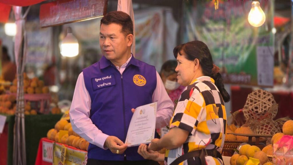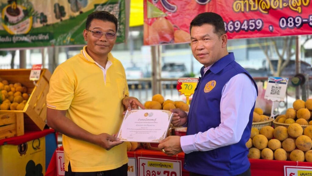 พิธีมอบประกาศเกียรติคุณรับรองคุณภาพความหวานของกระท้อน ให้กับร้านค้าที่จำหน่ายกระท้อนในงานกระท้อนหวานของดีเมืองลพบุรี