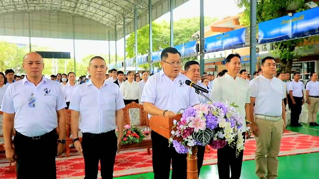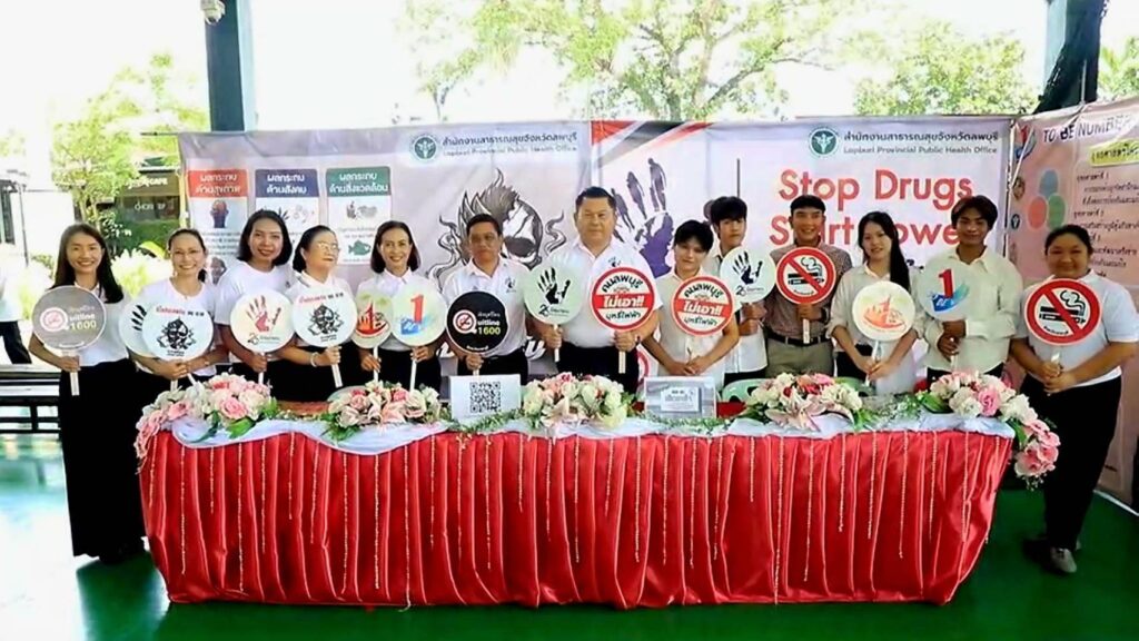ที่ โดมอเนกประสงค์ วิทยาลัยเทคนิคลพบุรี นายปรัชญา เปปะตัง รองผู้ว่าราชการจังหวัดลพบุรี เป็นประธาน อ่านสาร ในพิธีเปิดกิจกรรมรณรงค์ เนื่องในวันต่อต้านยาเสพติดโลก ประจำปี 2568 และนำผู้ร่วมกิจกรรม กล่าวคำปฏิญาณตน ประกาศเจตนารมณ์ต่อต้านยาเสพติด เนื่องในวันต่อต้านยาเสพติด ประจำปี 2568 พร้อมทั้ง มอบเกียรติบัตร ให้กับคณะผู้บริหารสถานศึกษา ที่ผ่านเกณฑ์ประเมิน “สถานศึกษาสีขาว ปลอดยาเสพติดและอบายมุข” ดีเด่น ระดับรักษามาตรฐานเพชร ปีที่ 3 ได้แก่ โรงเรียนท่าดินดำ อำเภอชัยบาดาล และ สถานศึกษา ที่ผ่านเกณฑ์การประเมินผลงานดีเด่น จำนวน 18 โรงเรียน นอกจากนี้ ยังได้มอบใบประกาศหมู่บ้านที่มีความเข้มแข็งในการป้องกันและแก้ไขปัญหายาเสพติด จำนวน 11 แห่ง โดยมี นายทิพเมษฐ์ สังขวรรณะ ผู้อำนวยการ สำนักงาน ปปส.ภาค 1 พร้อมด้วย คณะกรรมการศูนย์อำนวยการป้องกันและปราบปรามยาเสพติดจังหวัดลพบุรี ชมรม To Be Number One หัวหน้าส่วนราชการ หัวหน้าหน่วยงาน ผู้บริหารสถานศึกษา คณาจารย์ นักเรียน นักศึกษา เข้าร่วม