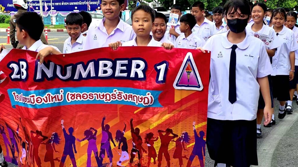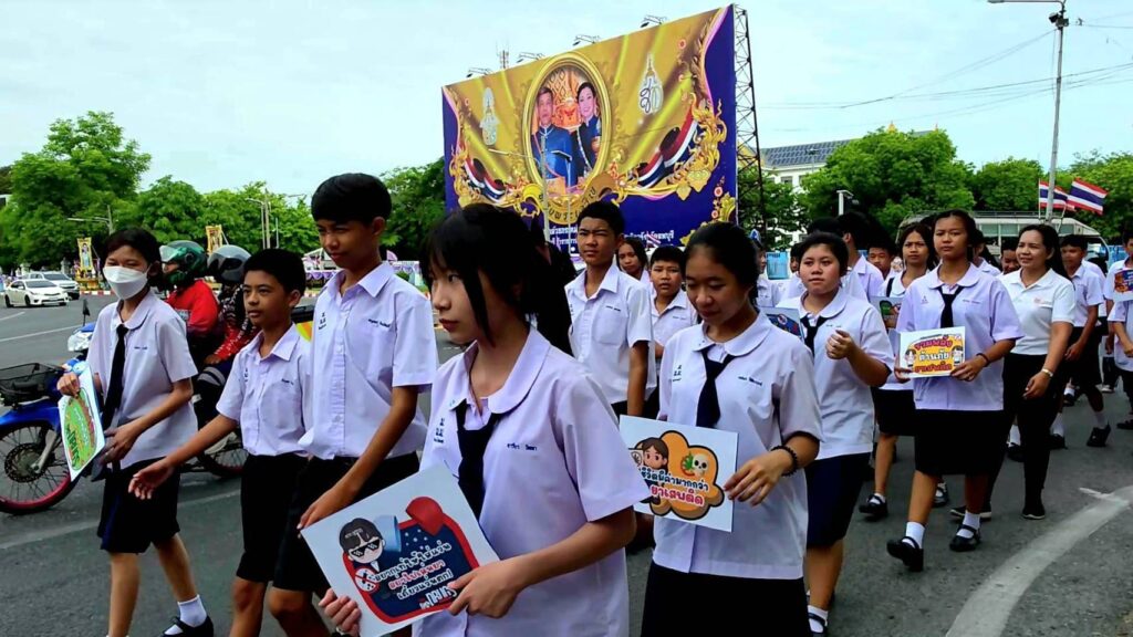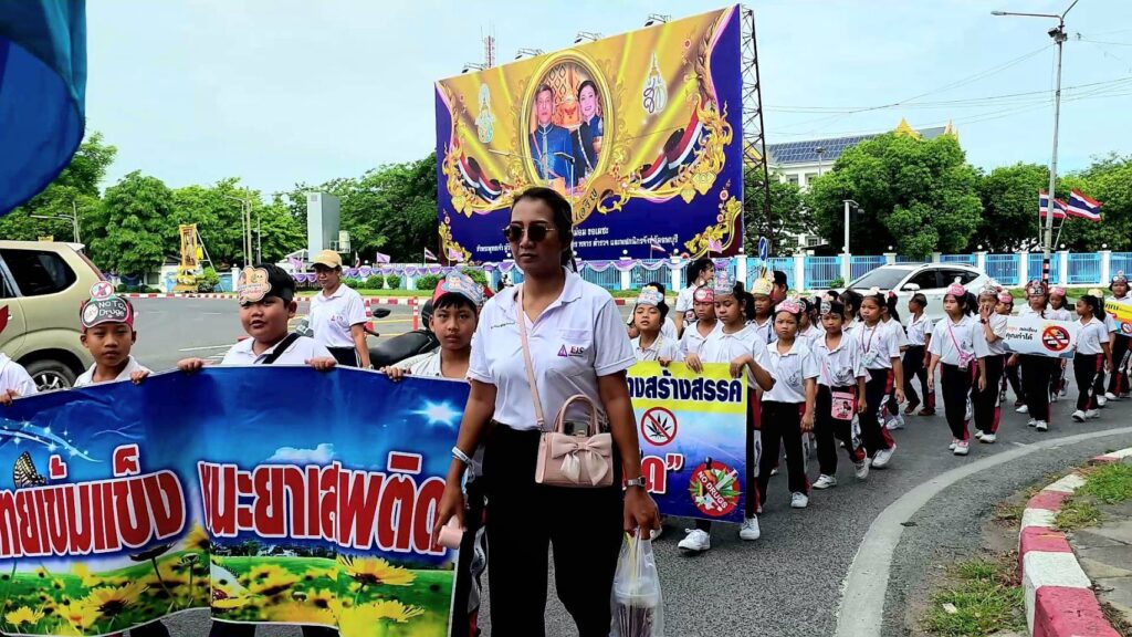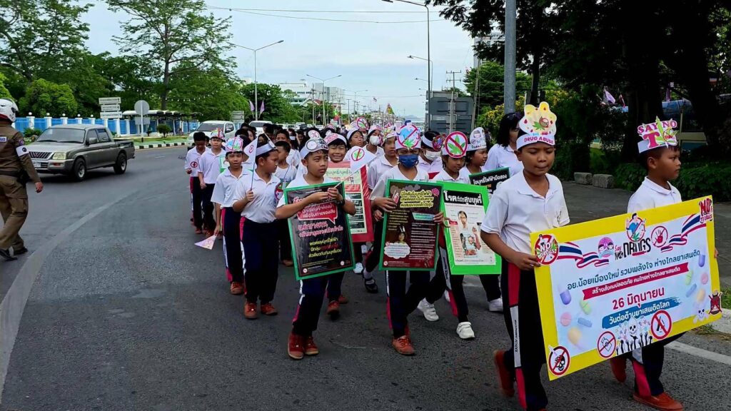 ขณะที่ โรงเรียนเมืองใหม่ ชลอราษฎร์รังสฤษฏ์ อ.เมือง จ.ลพบุรี คณะครู นักเรียน ตั้งแต่ละดับชั้นประถมศึกษา ถึงมัธยมศึกษาตอนต้น กว่า 500 คน ได้ร่วมกัน ถือแผ่นป้าย คำขวัญ และข้อความต่างๆ เกี่ยวกับการต่อต้านยาเสพติด ออกเดินรณรงค์ไปตามท้องถนน หมู่ชุมชน ที่อยู่รอบสถานศึกษา เพื่อเป็นการรณรงค์ ให้ทุกภาคส่วนได้ตระหนักรู้ และร่วมแก้ไขปัญหายาเสพติด ให้หมดไปจากสังคมไทยอย่างเป็นรูปธรรม