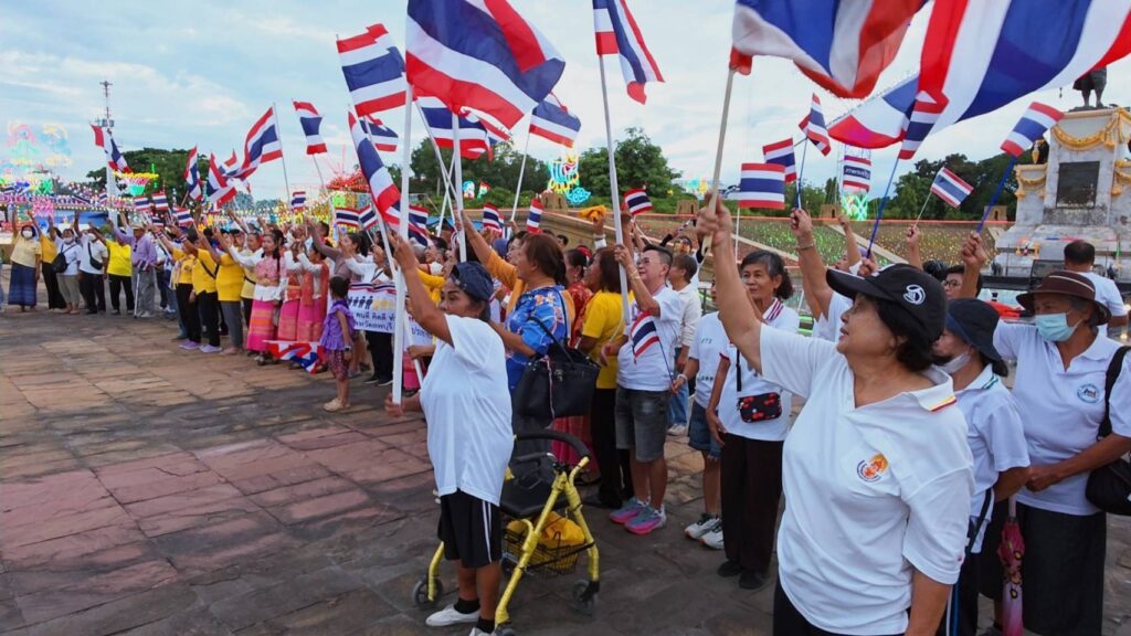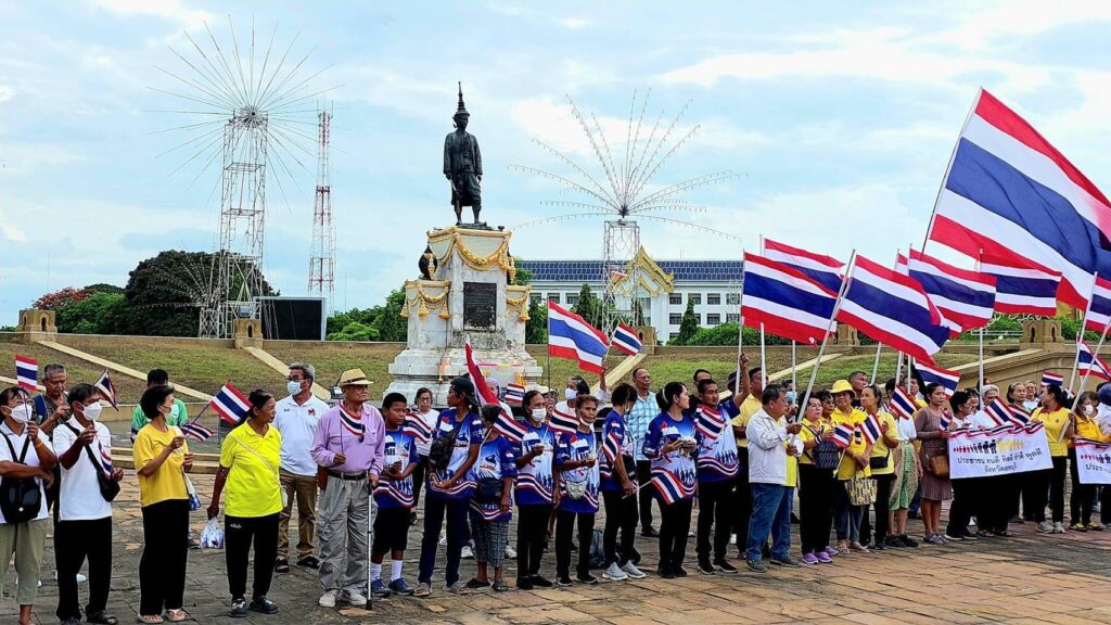 โดยแกนนำได้ร่วมกันขับร้องเพลง เราสู้ เพลงบ้านเกิดเมืองนอน เพลงไทยรวมกำลัง สลับกันไป ก่อนที่ทั้งหมดได้เข้าแถวยืนเคารพธงชาติไทย และร้องเพลงสรรเสริญพระบารมี เป็นการปิดท้ายกิจกรรม ก่อนที่ทั้งหมดจะแยกย้ายกันกลับบ้าน โดยบรรยากาศเป็นไปอย่างคึกคัก โดยมีเจ้าหน้าที่กองอาสารักษาดินแดนเข้าสังเกตการณ์ ซึ่งเป็นการแสดงพลังอย่างสงบโดยไม่มีเจตนาทำลายความมันคงแต่อย่างใดๆ