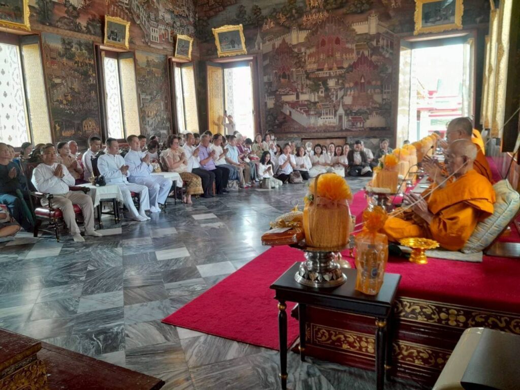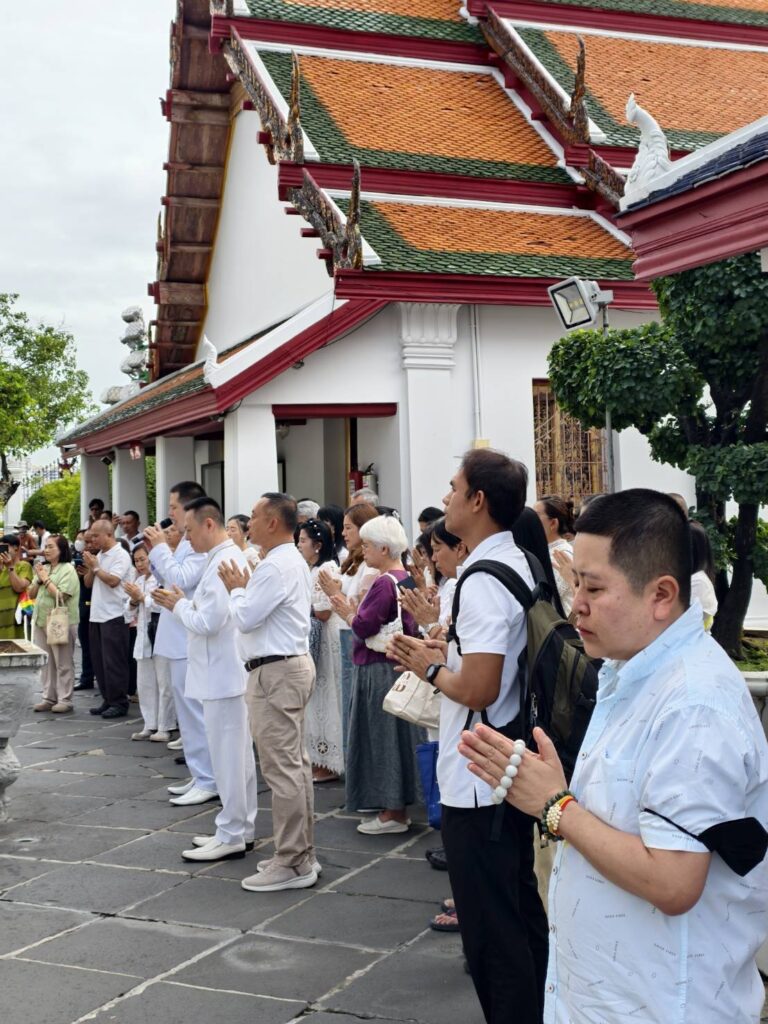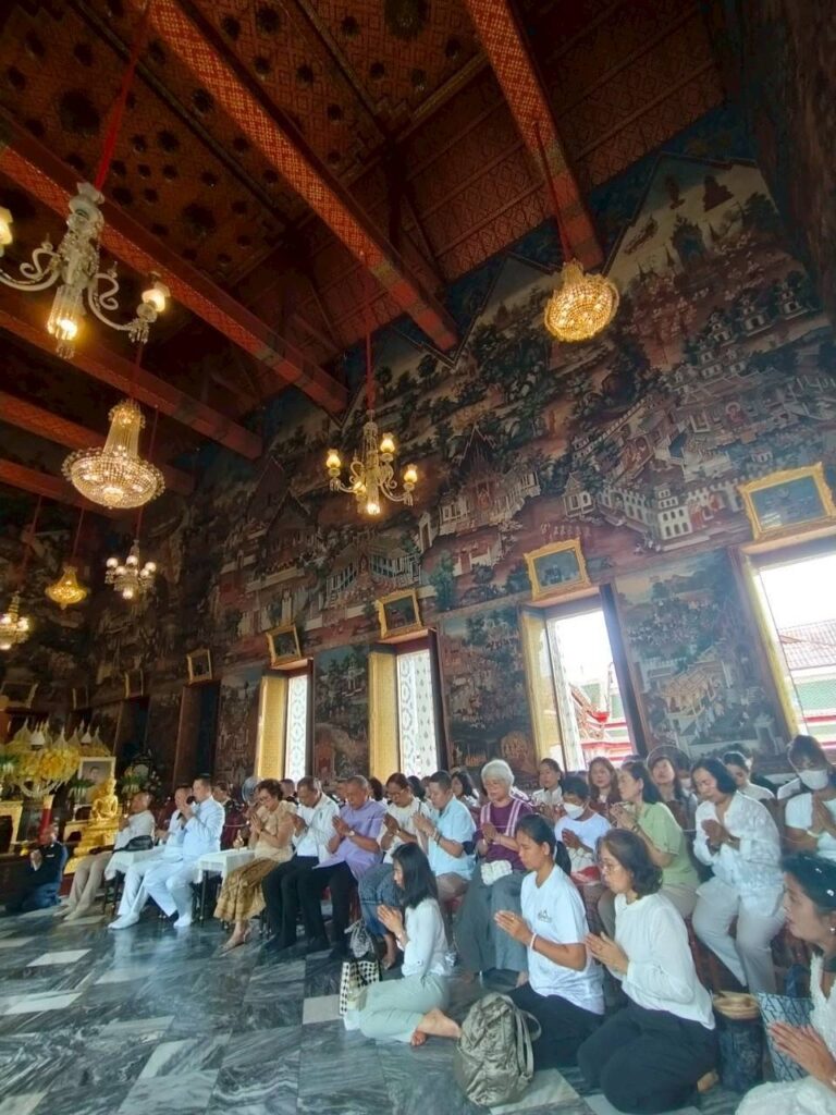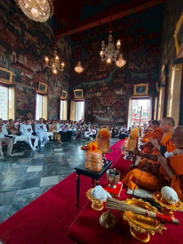 ผู้คนหลั่งไหลมาร่วมบุญแน่นขนัด สัมผัสได้ถึงพลังบุญที่แผ่ซ่านในอากาศ พิธีเริ่มต้นด้วยการสักการะสิ่งศักดิ์สิทธิ์และเจริญพระพุทธมนต์สมโภช ณ พระอุโบสถวัดอรุณฯ บรรยากาศเต็มไปด้วยพลังอันบริสุทธิ์ การอธิษฐานจิตและแผ่เมตตาได้สร้างช่วงเวลาที่ทุกหัวใจหลอมรวมเป็นหนึ่ง ส่งพลังแห่งความรักและความปรารถนาดีไปยังแผ่นดินไทย