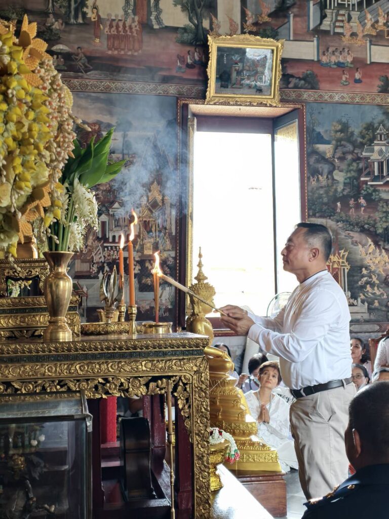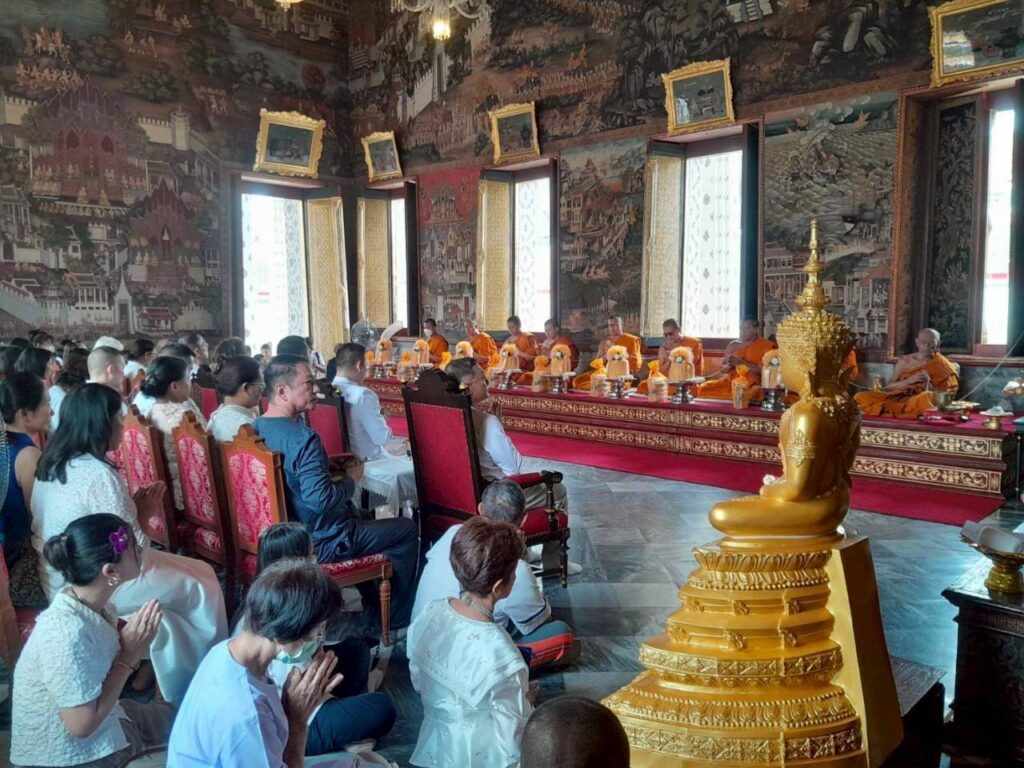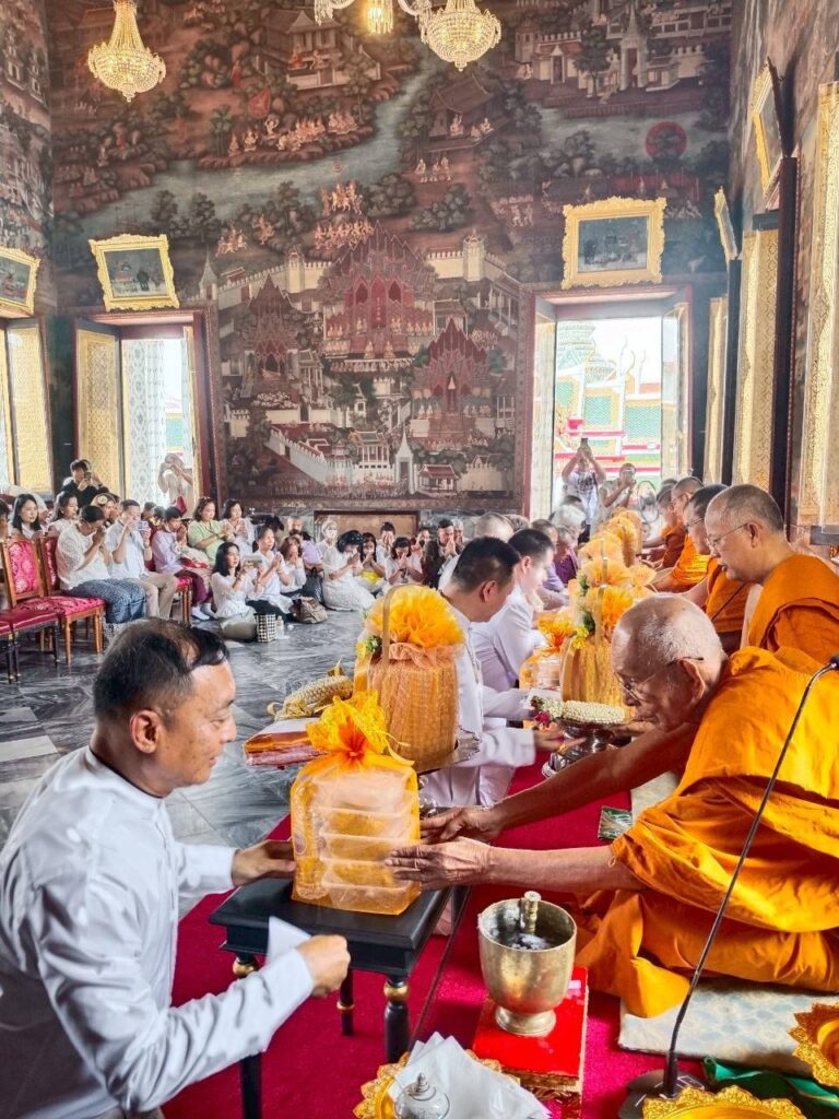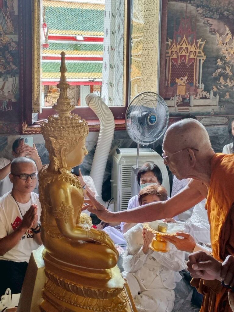ผู้คนหลั่งไหลมาร่วมบุญแน่นขนัด สัมผัสได้ถึงพลังบุญที่แผ่ซ่านในอากาศ พิธีเริ่มต้นด้วยการสักการะสิ่งศักดิ์สิทธิ์และเจริญพระพุทธมนต์สมโภช ณ พระอุโบสถวัดอรุณฯ บรรยากาศเต็มไปด้วยพลังอันบริสุทธิ์ การอธิษฐานจิตและแผ่เมตตาได้สร้างช่วงเวลาที่ทุกหัวใจหลอมรวมเป็นหนึ่ง ส่งพลังแห่งความรักและความปรารถนาดีไปยังแผ่นดินไทย