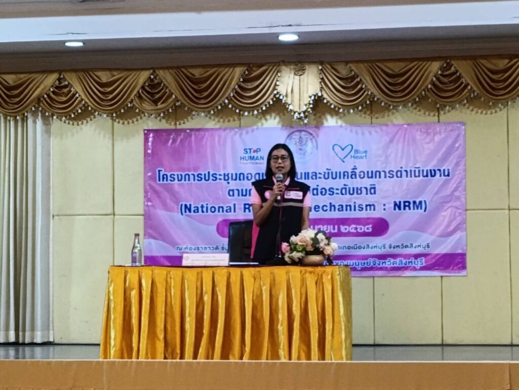 วันศุกร์ที่ 27 มิถุนายน 2568 เวลา 9.30 น.นางสาวมนชยา ปรีชา พัฒนาสังคมและความมั่นคงของมนุษย์จังหวัดสิงห์บุรี เป็นประธานเปิดโครงการประชุมถอดบทเรียนและขับเคลื่อนการดำเนินงานตามกลไกการส่งต่อระดับชาติ National Referral Mechanism : NRM ณ โรงแรมโกลเด้นดราก้อนรีสอร์ท จังหวัดสิงห์บุรี โดยมี นางปิลันธนา วสุรัตน์ หัวหน้ากลุ่มการพัฒนาสังคมและสวัสดิการ และเจ้าหน้าที่จากหน่วยงานภาครัฐที่เกี่ยวข้องด้านการป้องกันและแก้ไขปัญหาการค้ามนุษย์จำนวน 50 คน ร่วมแลกเปลี่ยนเรียนรู้กลไกการส่งต่อระดับชาติ เป็นกลไกที่ถูกออกแบบมาเพื่อความสะดวกในการปฏิบัติงานของหน่วยงานที่เกี่ยวข้องในการประสานความร่วมมือ การแบ่งปันข้อมูลการส่งต่อความช่วยเหลือคุ้มครองบุคคลที่มีเหตุอันควรเชื่อได้ว่าจะเป็นผู้เสียจากการค้ามนุษย์ผู้เสียหายจากการบังคับใช้แรงงานหรือบริการและเพื่อช่วยให้บุคคลเหล่านี้สามารถเข้าถึงบริการช่วยเหลือในเบื้องต้นได้ โดยประเทศไทยมีการพัฒนากลไกล NRM จากกรอบการดำเนินงานตามกฏหมายเดิมที่มีอยู่เดิมและแนวปฏิบัติในเรื่องของระยะเวลาการฟื้นฟูไตร่ตรองเพื่อให้สอดรับการดำเนินงานที่เป็นไปตามมาตรฐานสากล