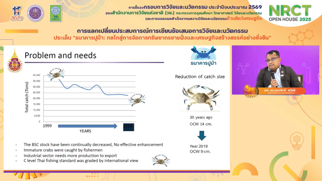 -ประเด็น “ธนาคารปูม้า : กลไกสู่การจัดการทรัพยากรชายฝั่งและเศรษฐกิจสร้างสรรค์อย่างยั่งยืน” โดย ผู้ช่วยศาสตราจารย์ ดร.อมรศักดิ์ สวัสดี (มหาวิทยาลัยวลัยลักษณ์)