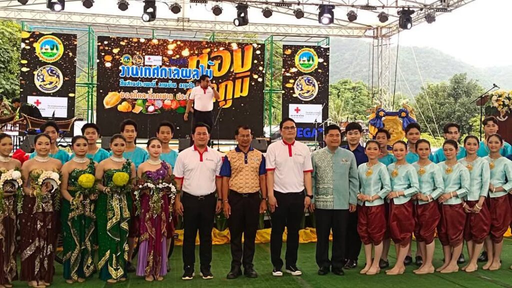 วันที่ 27 มิถุนายน 2568 ณ ลานจอดเฮลิคอปเตอร์ เขื่อนวชิราลงกรณ อำเภอทองผาภูมิ จังหวัดกาญจนบุรี นายสิทธิวีร์ วรรณพฤกษ์ รองผู้ว่าราชการจังหวัดกาญจนบุรี เป็นประธานในพิธีเปิดงาน “เทศกาลผลไม้ สืบสานประเพณีลานบ้านลานวัฒนธรรมของดีอำเภอทองผาภูมิ และงานกิ่งกาชาดอำเภอทองผาภูมิ ประจำปี 2568” โดยมี นายสกล อักษรธนาวัฒน์ ผู้อำนวยการเขื่อนวชิราลงกรณ กล่าวต้อนรับ และนายชาคริต ตันพิรุฬห์ นายอำเภอทองผาภูมิ กล่าวรายงานถึงวัตถุประสงค์ของการจัดงาน ผู้พิพากษาหัวหน้าศาลจังหวัดกาญจนบุรี อัยการอำเภอทองผาภูมิ ผู้อำนวยการเขื่อนศรีนศรินทร์ โดยมีหัวหน้าส่วนราชการ ผู้นำองค์กรปกครองส่วนท้องถิ่น ผู้ประกอบการผลผลิตทางการเกษตร และประชาชน เข้าร่วมพิธีเปิดงานฯ ประธานให้เกียรติมอบรางวัลการประกวดขบวนรถผลไม้ มอบรางวัลการประกวดผลไม้ พร้อมถ่ายภาพเป็นที่ระลึก