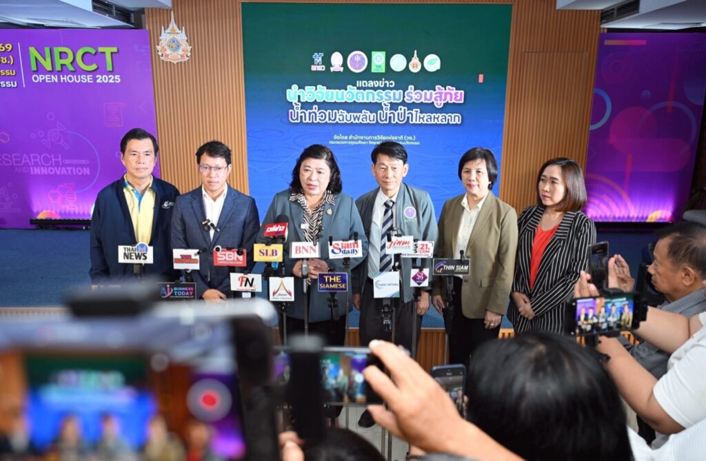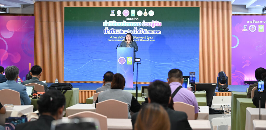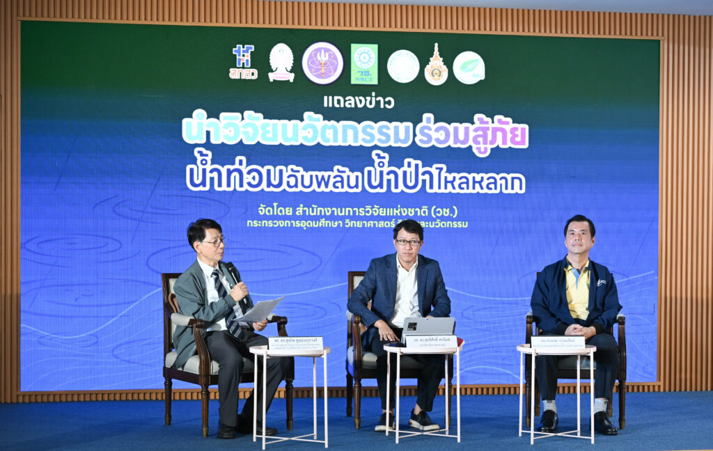 สำนักงานการวิจัยแห่งชาติ (วช.) กระทรวงการอุดมศึกษา วิทยาศาสตร์ วิจัยและนวัตกรรม (อว.) จัดแถลงข่าว “นำวิจัยนวัตกรรม ร่วมสู้ภัย น้ำท่วมฉับพลัน น้ำป่าไหลหลาก” โดย ดร.วิภารัตน์ ดีอ่อง ผู้อำนวยการสำนักงานการวิจัยแห่งชาติ เป็นประธานกล่าวแถลงข่าว และได้รับเกียรติจาก รศ.ดร.สุจริต คูณธนกุลวงศ์ และวิทยากรผู้เชี่ยวชาญด้านน้ำและดินโคลนถล่ม รศ.ดร.สุทธิศักดิ์ ศรลัมพ์ ผศ.ดร.อังกูร ว่องตระกูล และ ดร.ศรเทพ วรรณรัตน์ ร่วมแถลงข่าวและเสวนาในครั้งนี้ พร้อมทั้งผู้บริหาร (วช.) และสื่อมวลชน ณ ห้องประชุมจอมพลสฤษดิ์ ธนะรัชต์ สำนักงานการวิจัยแห่งชาติ (วช.) และในรูปแบบออนไลน์ผ่านวีดีทัศน์ทางไกล (VDO Conference) ด้วยระบบ Zoom และการถ่ายทอดสด (Live Steaming)