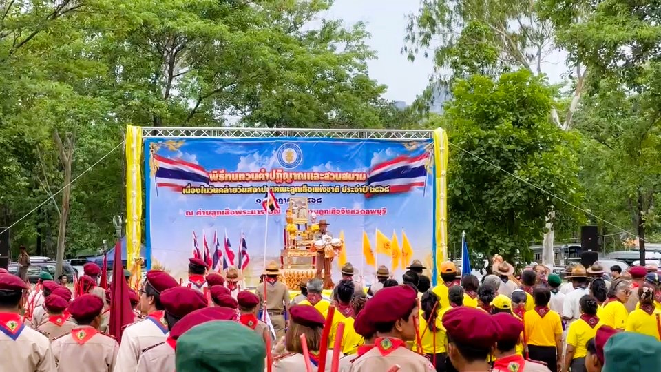 วันที่ 1 กรกฎาคม 2568 เวลา 09.00 น. ณ ค่ายลูกเสือพระนารายณ์ ตำบลนิคมสร้างตนเอง อำเภอเมืองลพบุรี จังหวัดลพบุรี ว่าที่ร้อยตรี ทรงพล แป้นแก้ว รองผู้ว่าราชการจังหวัดลพบุรี เป็นประธานในพิธีทบทวนคำปฏิญาณ และสวนสนามของลูกเสือในวันคล้ายวันสถาปนาคณะลูกเสือแห่งชาติ ประจำปี 2568 เพื่อเป็นการน้อมรำลึกในพระมหากรุณาธิคุณของพระบาทสมเด็จพระมงกุฎเกล้าเจ้าอยู่หัว ผู้พระราชทานกำเนิดลูกเสือไทย และเป็นการแสดงความจงรักภักดีแด่องค์พระบาทสมเด็จพระเจ้าอยู่หัวพระประมุขของคณะลูกเสือแห่งชาติ โดยมี นายศุภศิษฎ์ นุ่มฤทธิ์ ผู้อำนวยการสำนักงานเขตพื้นที่การศึกษาประถมศึกษาลพบุรี เขต 1 พร้อมด้วยกองลูกเสือ เนตรนารี สำรอง สามัญ สามัญรุ่นใหญ่ ผู้บังคับบัญชาลูกเสือ ร่วมประกอบพิธีฯ เข้าร่วมกว่า 1,300 คน