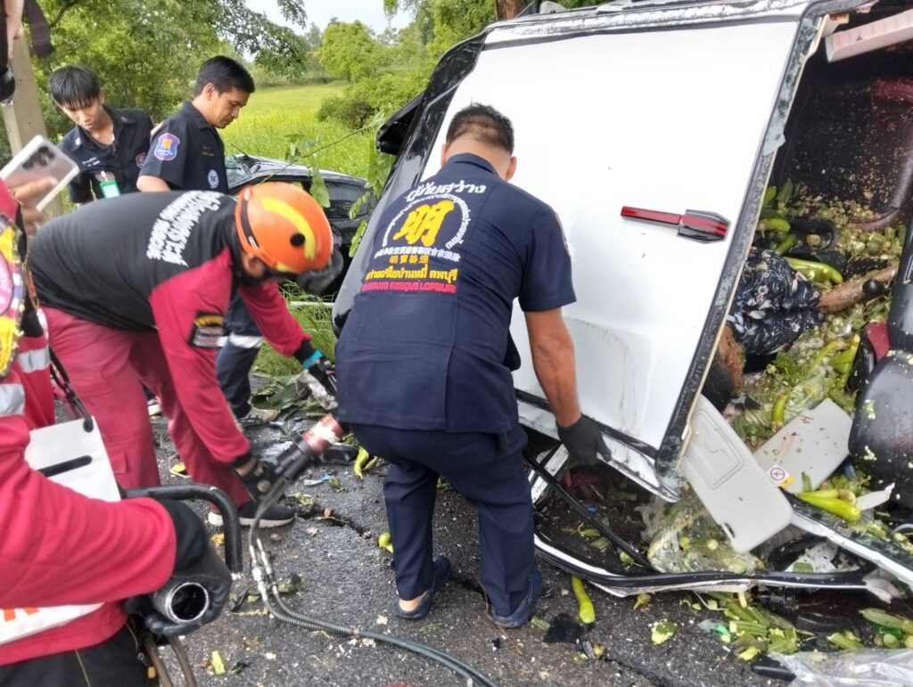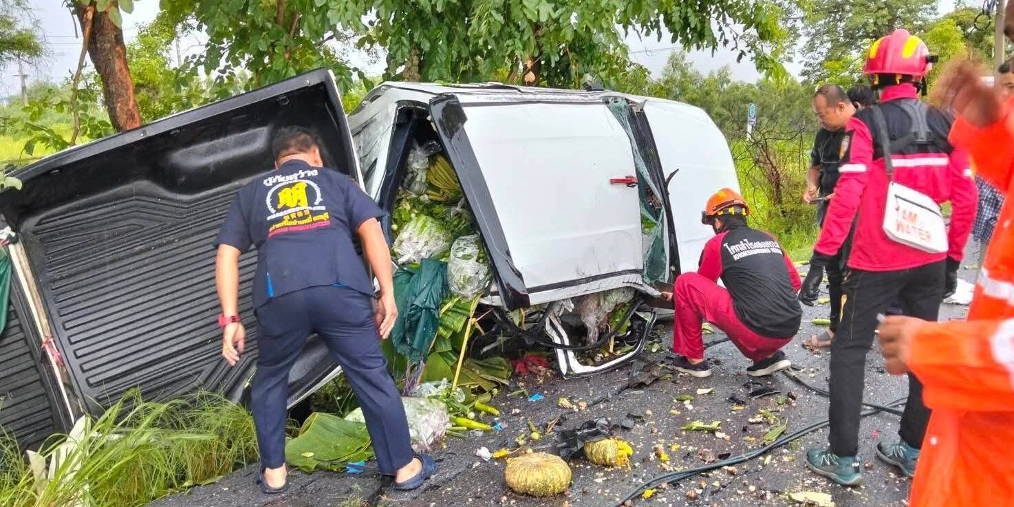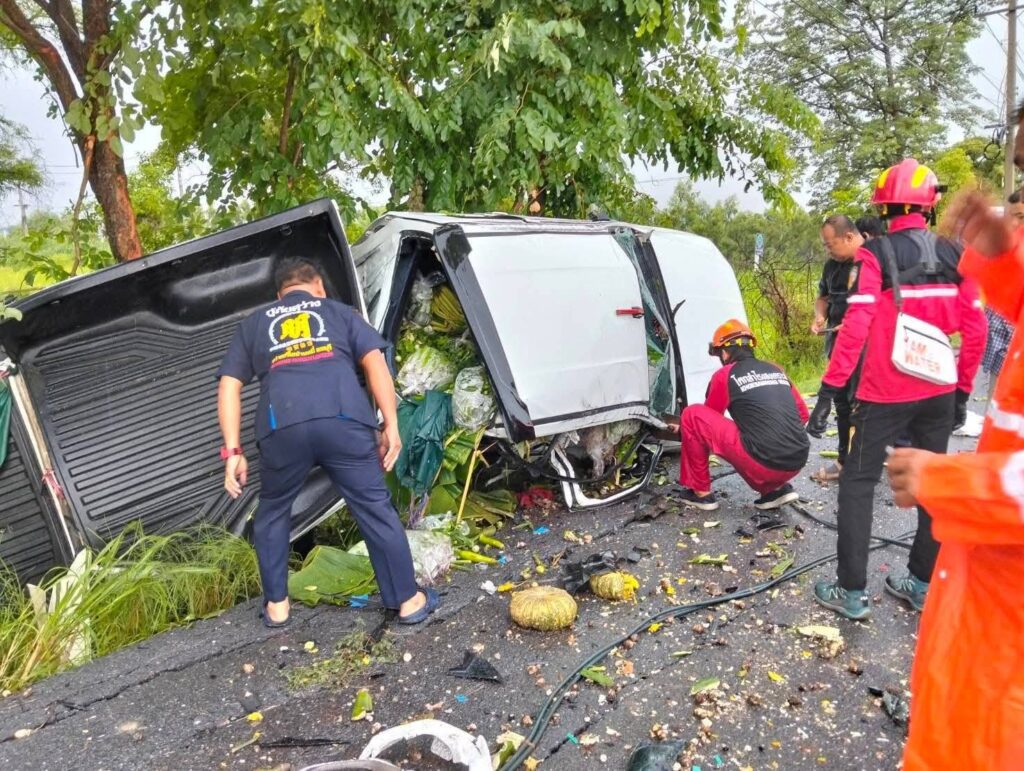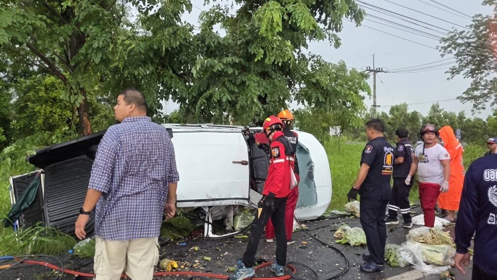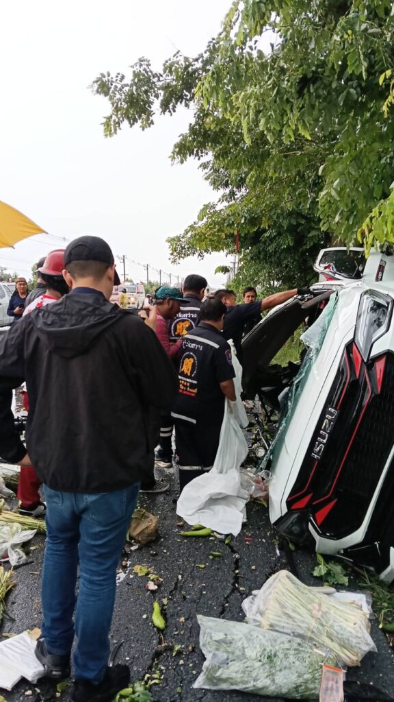 เกิดอุบัติเหตุ รถกระบะขนผักกลับจากตัวเมืองลพบุรี